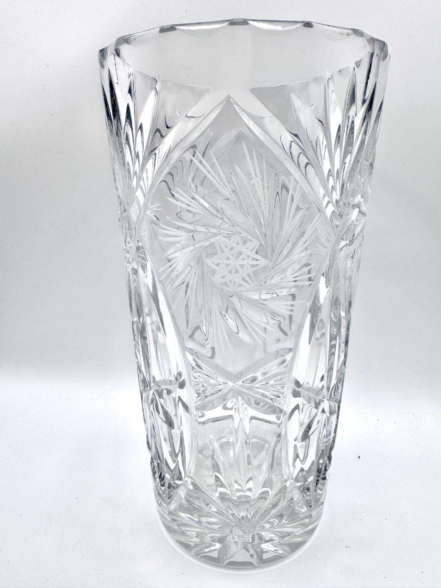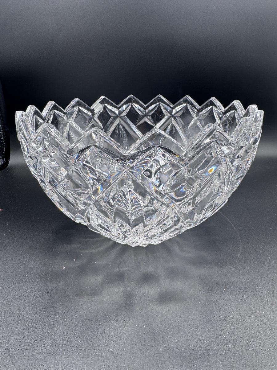 Deep Cut Crystal Punch Bowl Star Sawtooth Edge & Vase