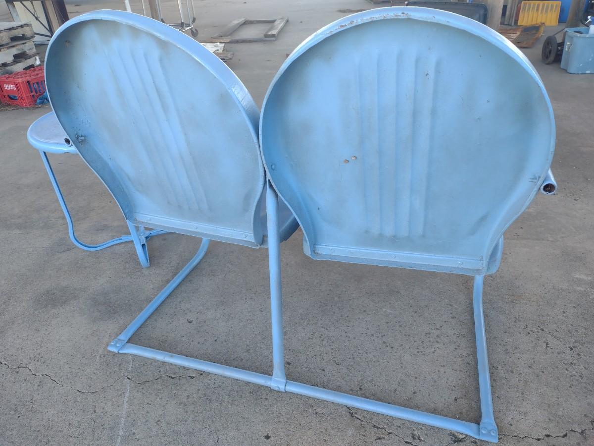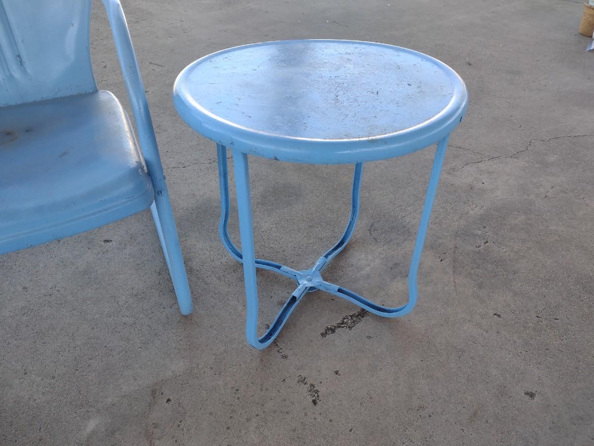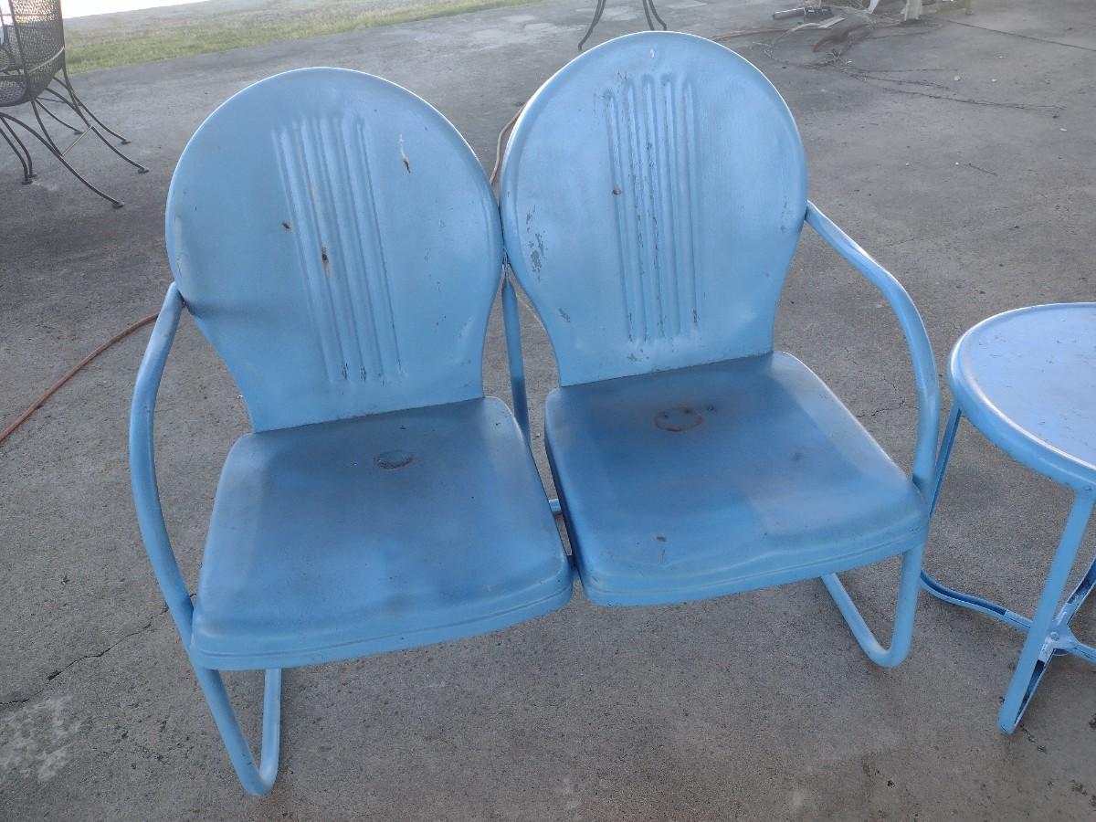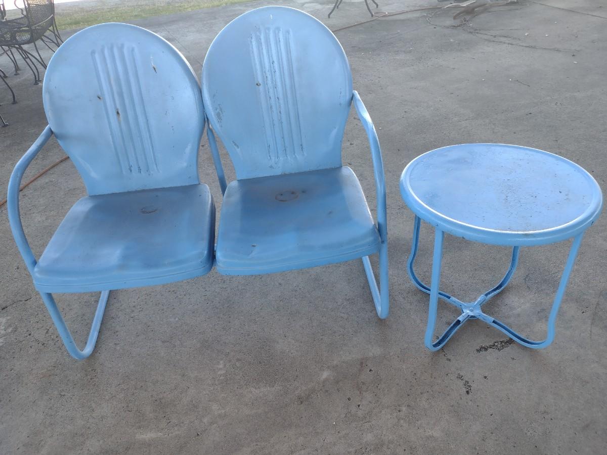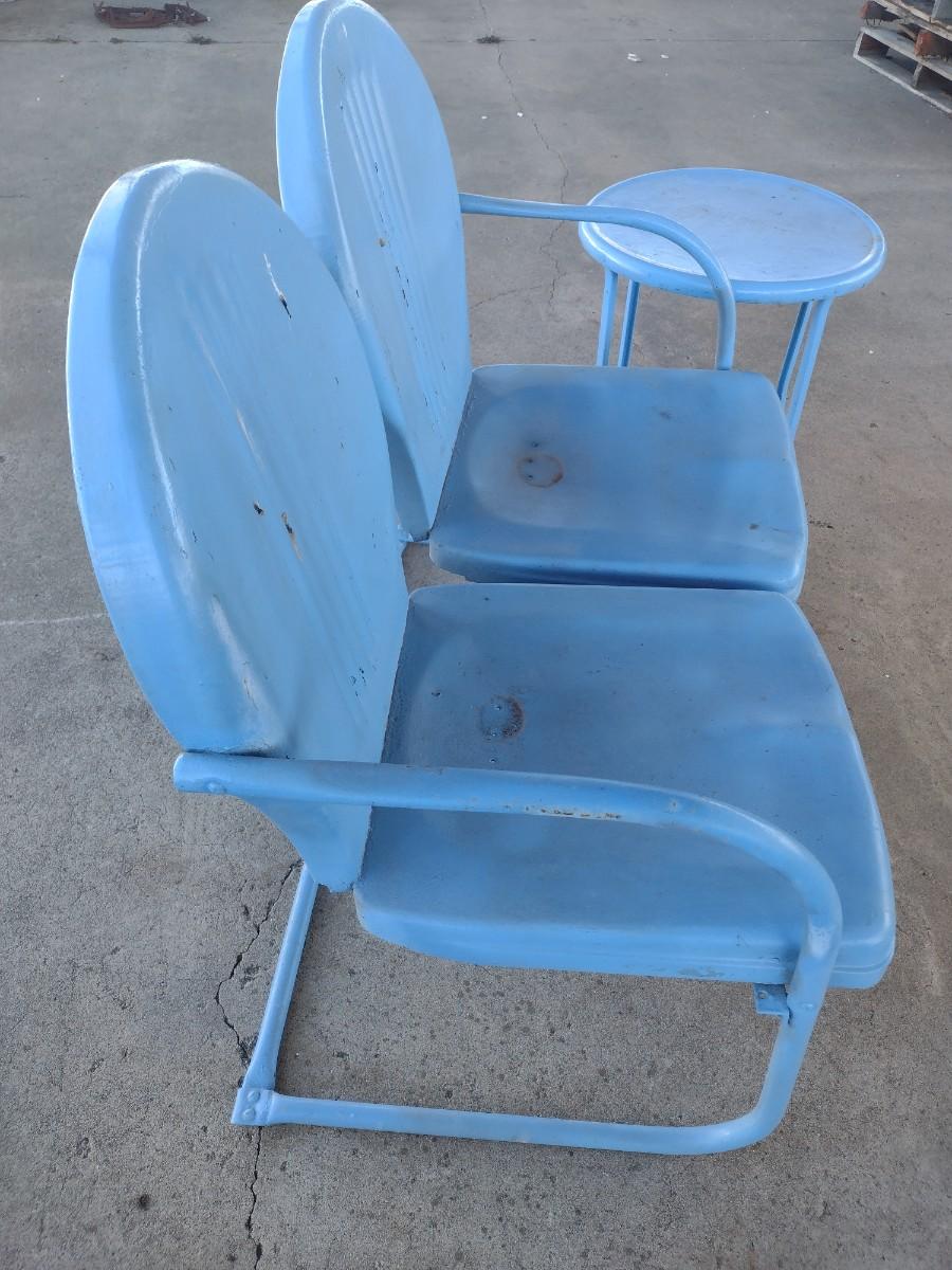 Vintage MCM Double Seat Metal Lawn Chair with Side Table