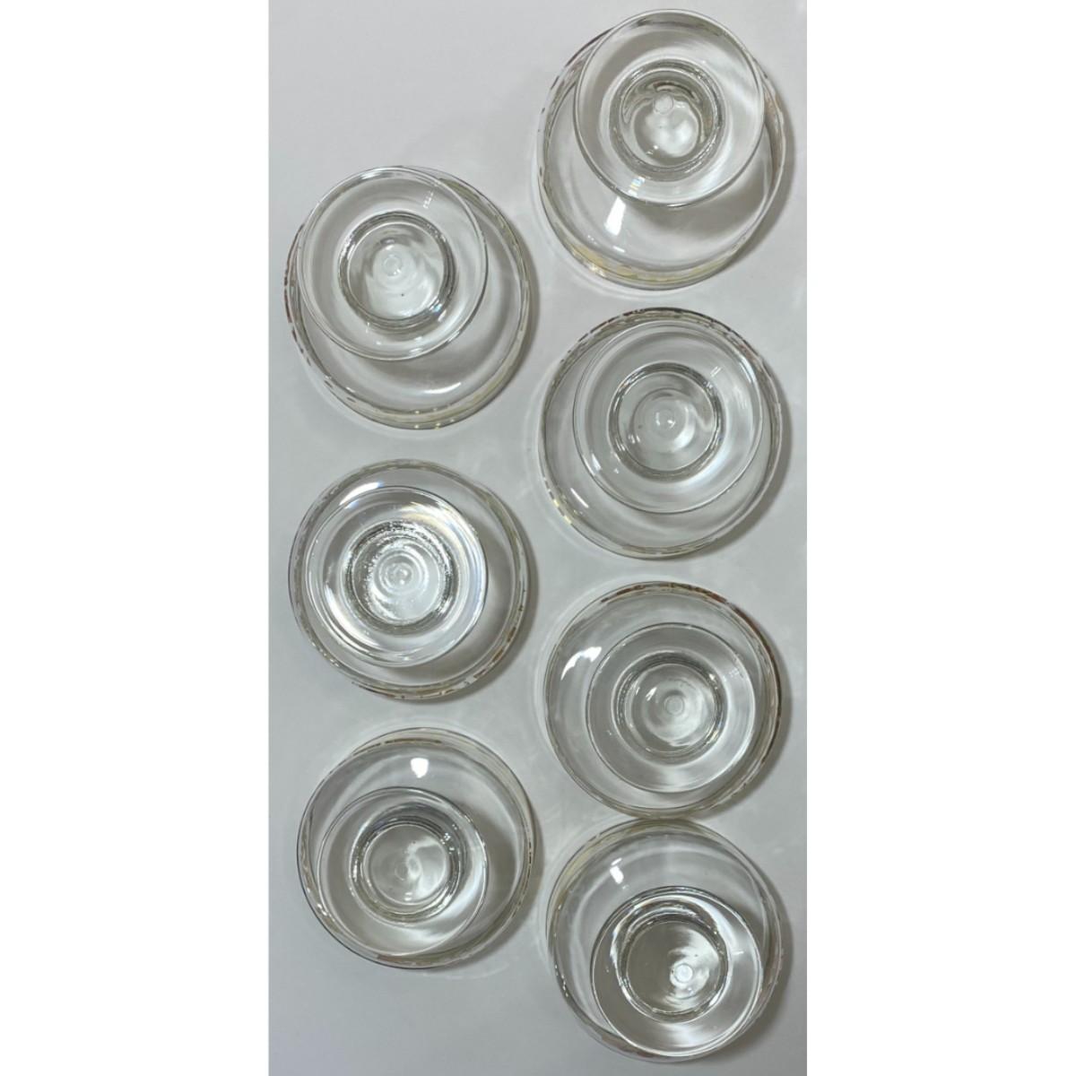 You get seven bowls that are in good condition with minor surface wear. They stand approximately 2 7/8" tall, have a 3.75" diameter at the rim, and a 2.75" diameter at the base. Please see all pictures. Thank you for looking. As a reminder, if this is a lot, we do not break up lots. Also, all items are prepacked, so each item is sent individually. Any item that qualifies for media mail and weighs over one pound will be shipped via media mail. Otherwise, the item will be shipped USPS ground advantage, or UPS ground. Shipping for this item is $19.00. Items ship within two days after payment is received. Item SKU is OTH3009.