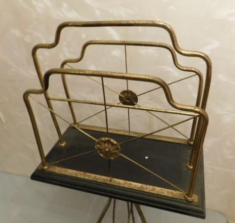 Vintage MCM Glo-Mar Artworks, Inc. NY Tripod Stand Swivel Magazine Rack 32"x15", Some of the plating is coming off the metal frame but a very rare piece