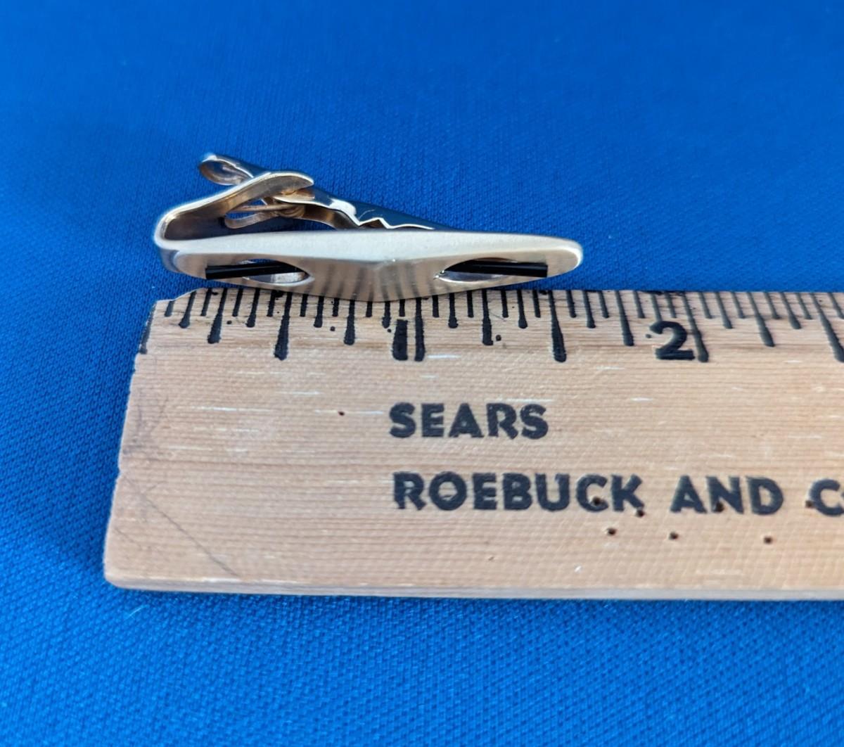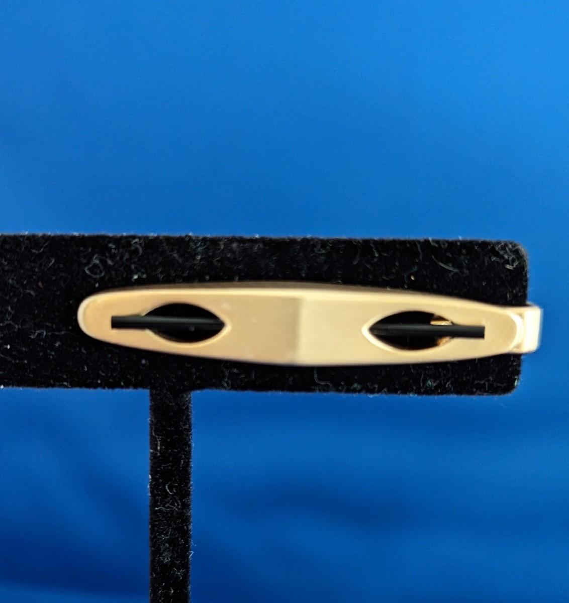 Made by Swank. 1 5/8 in across. clip action is firm.