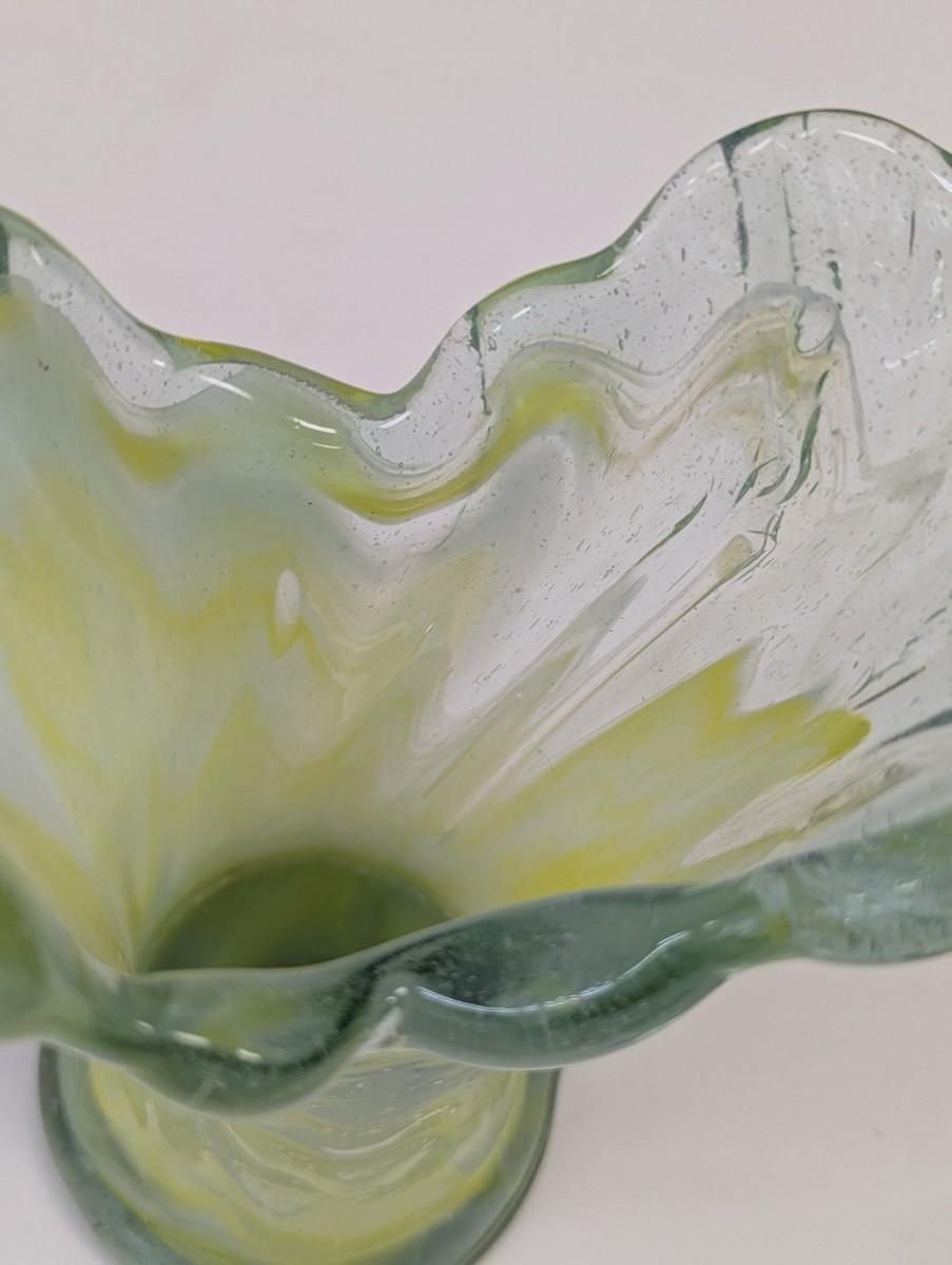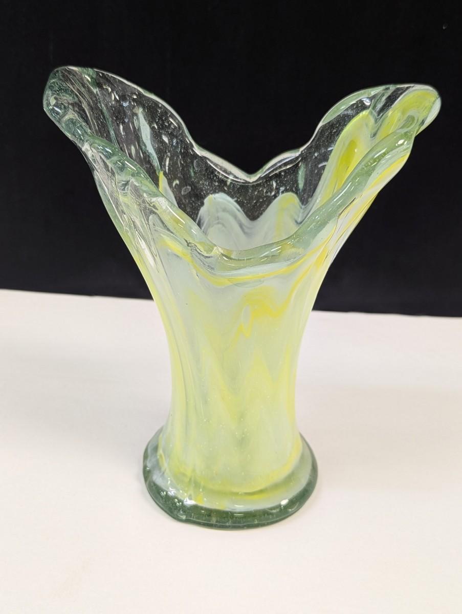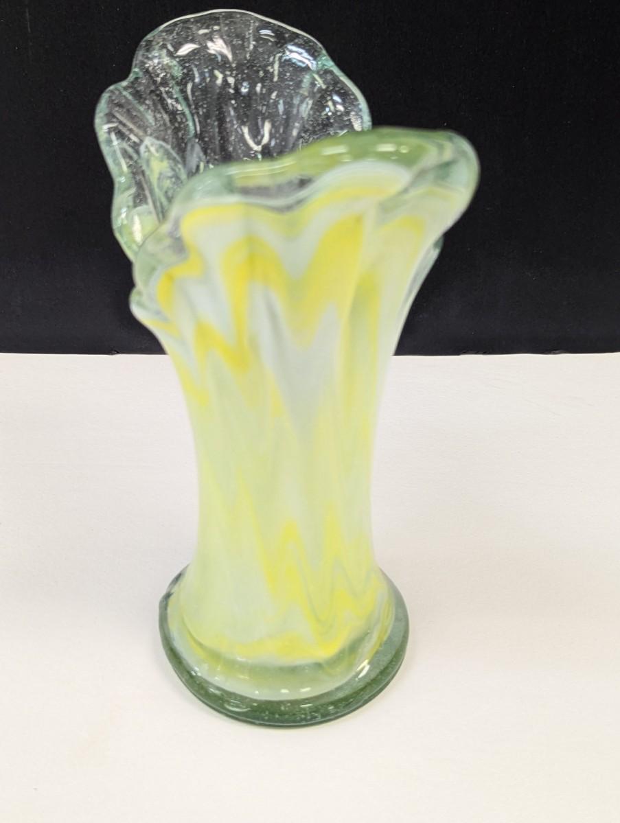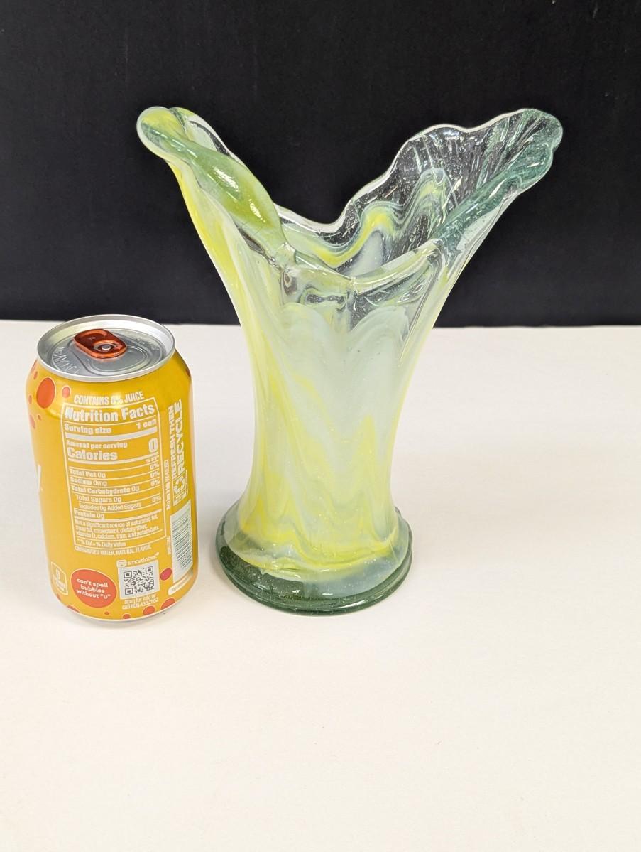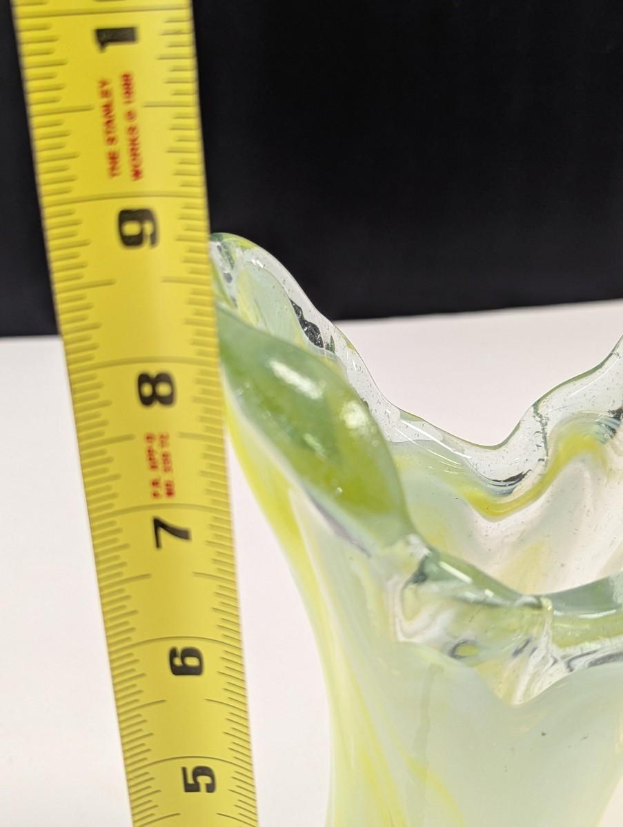Vintage MCM Hand Blown Vase Stretched Yellow Murano Style