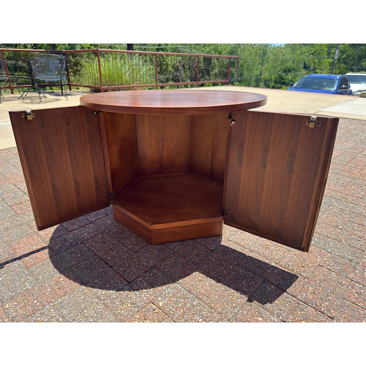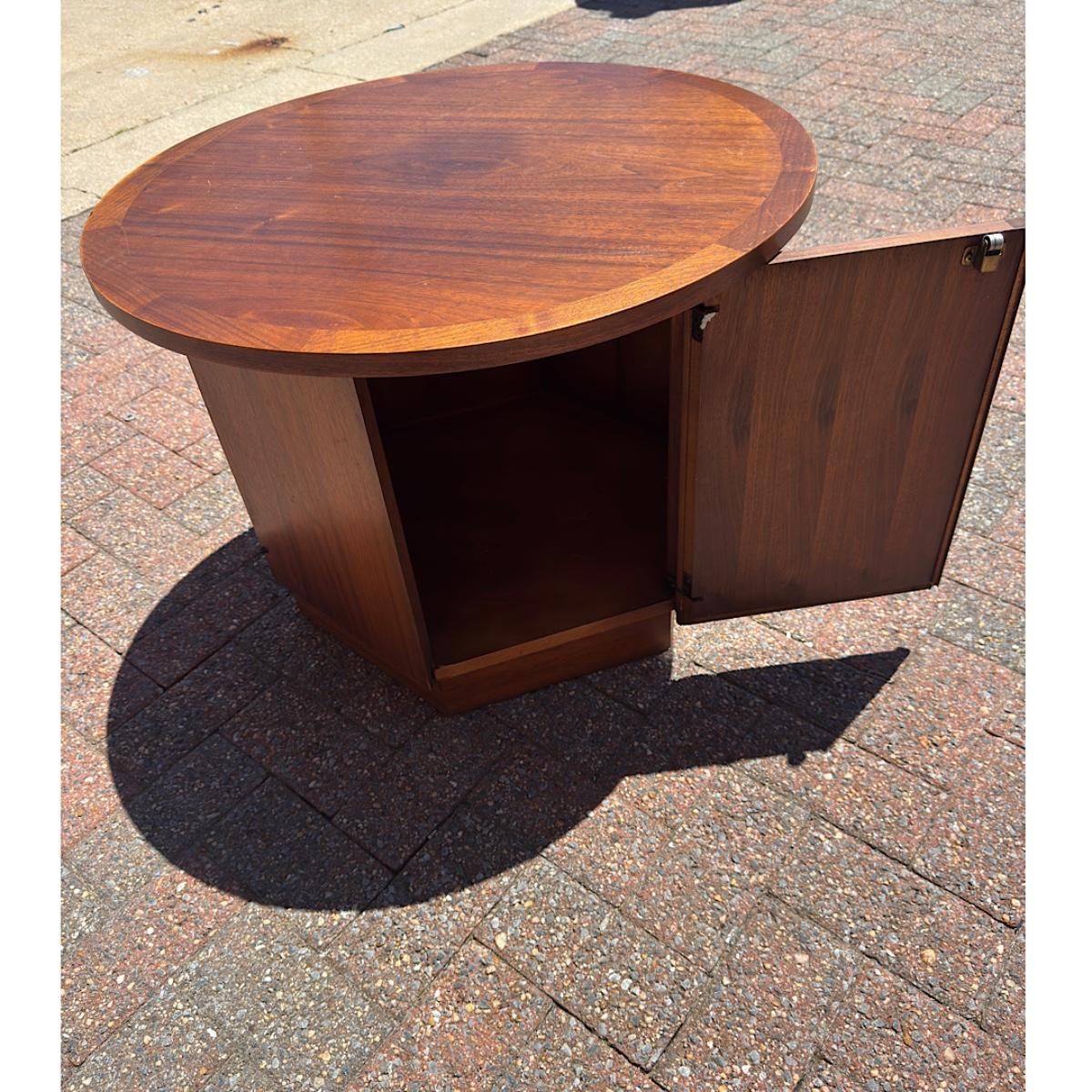 VINTAGE MCM - LANE FURNITURE WALNUT ROUND DRUM TABLE STORAGE CABINET