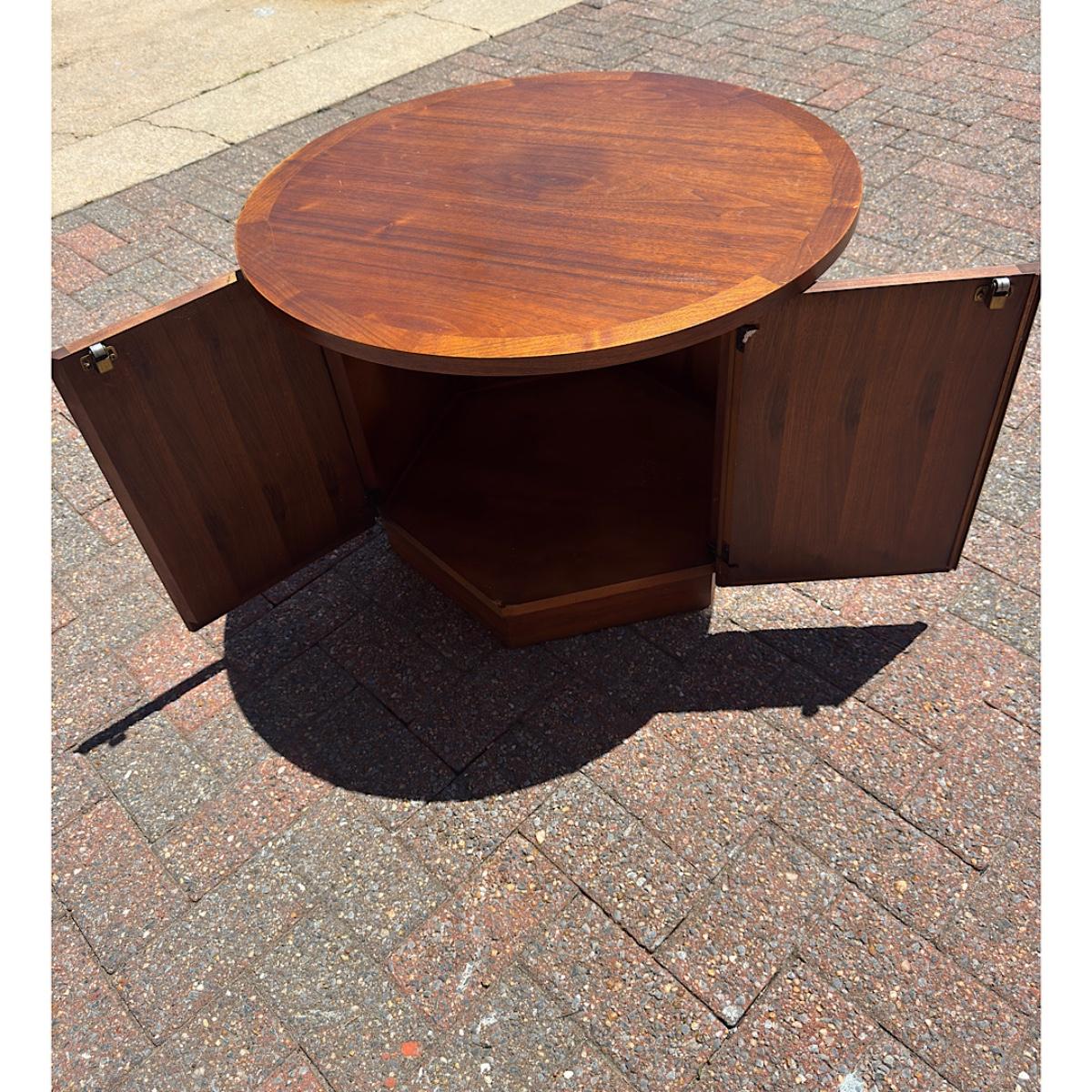 VINTAGE MCM - LANE FURNITURE WALNUT ROUND DRUM TABLE STORAGE CABINET