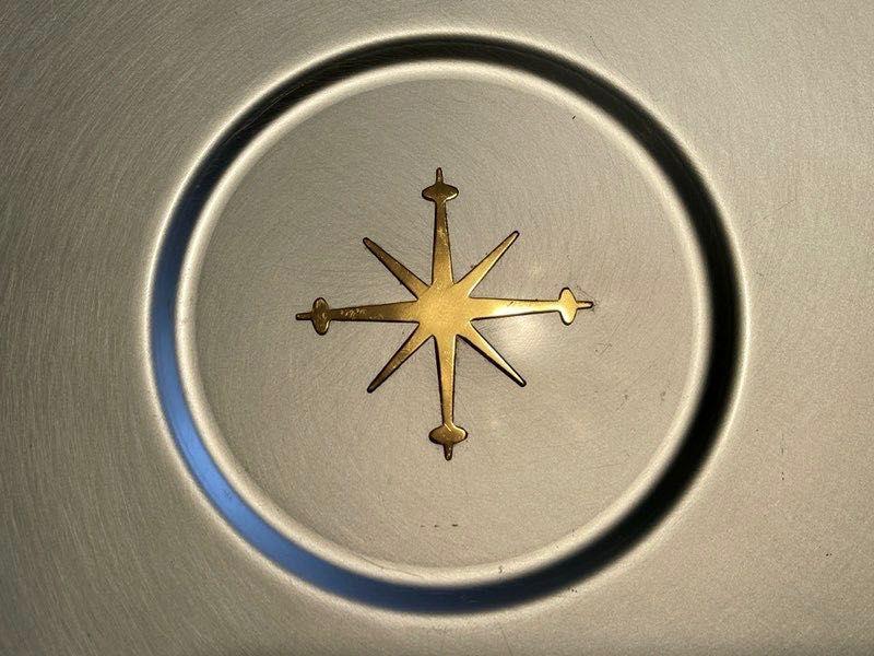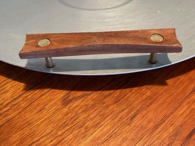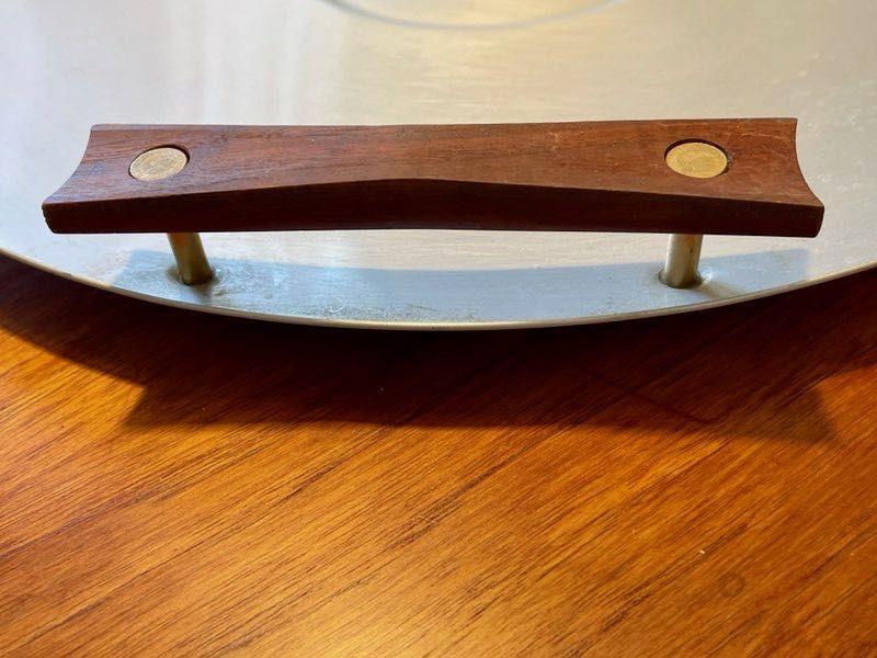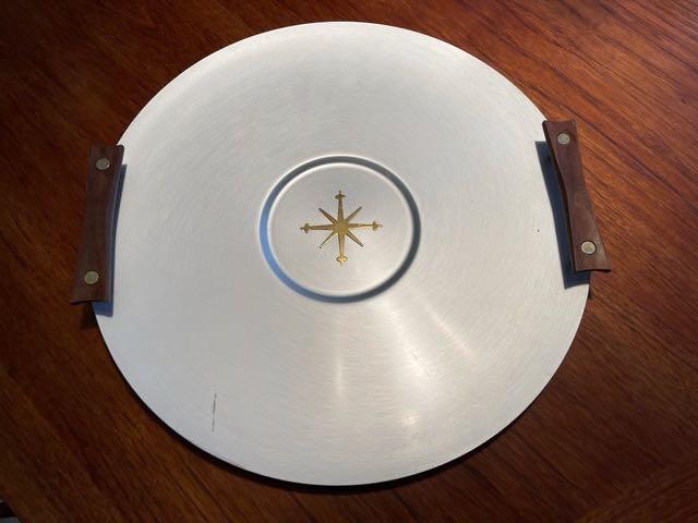 Vintage MCM Mirro Medallion Atomic Starburst 17" Tray Teak Handles