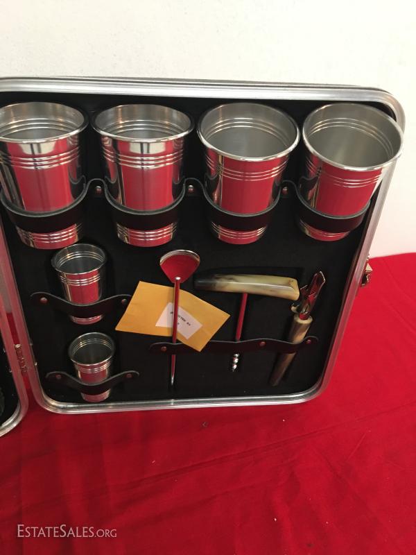 Vintage MCM Portable Bar Set-Up Liquor Case 1960's Mixer