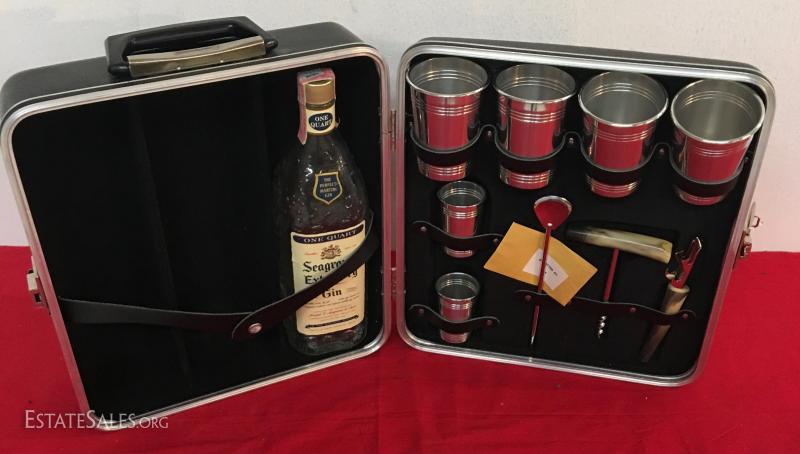 Vintage MCM Portable Bar Set-Up Liquor Case 1960's Mixer