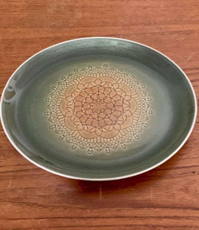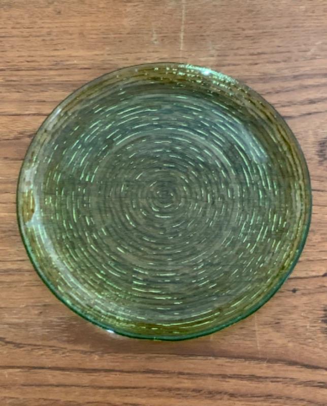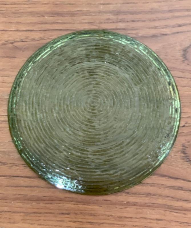 10" textured green plate, maker unknown.