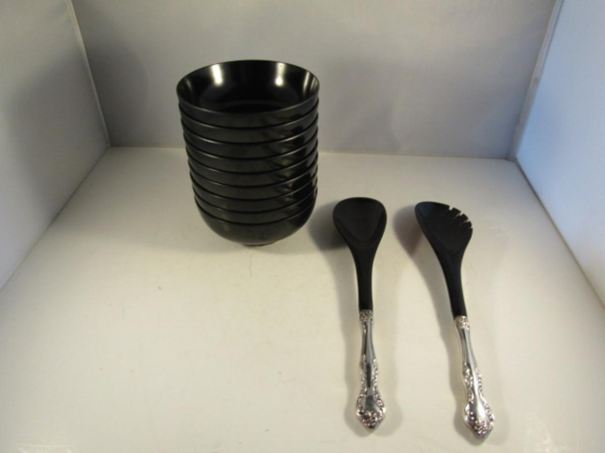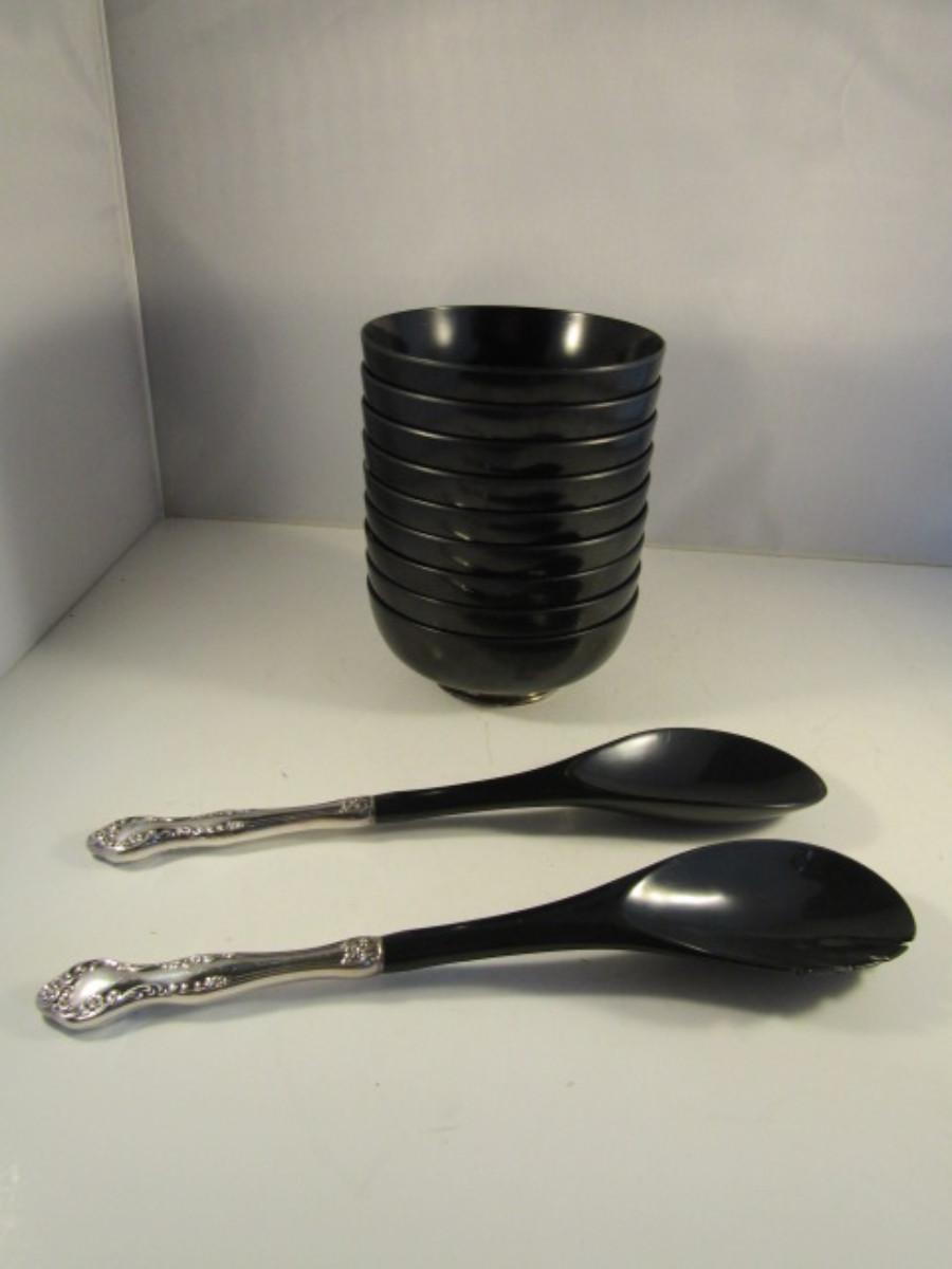 Vintage MCM Towle Salad Bowls with Sterling Base- 9 Bowls with Utensils