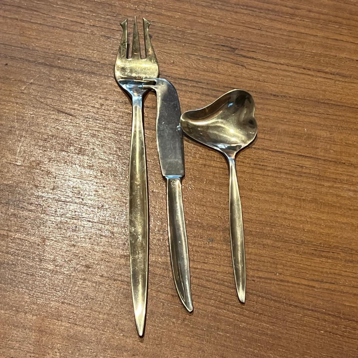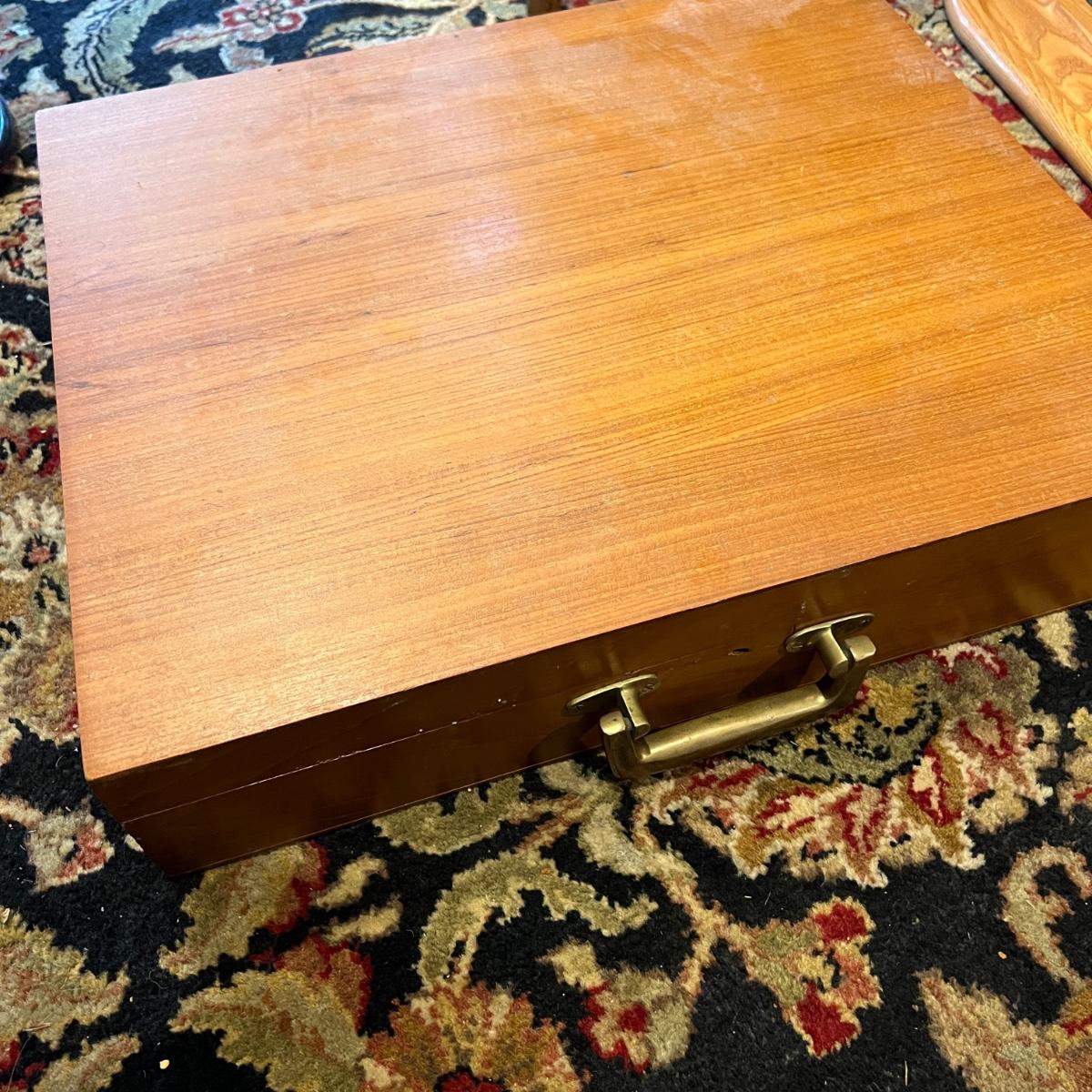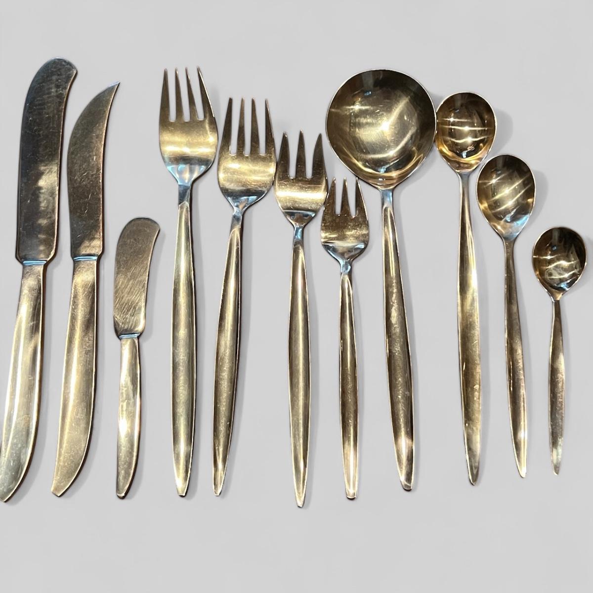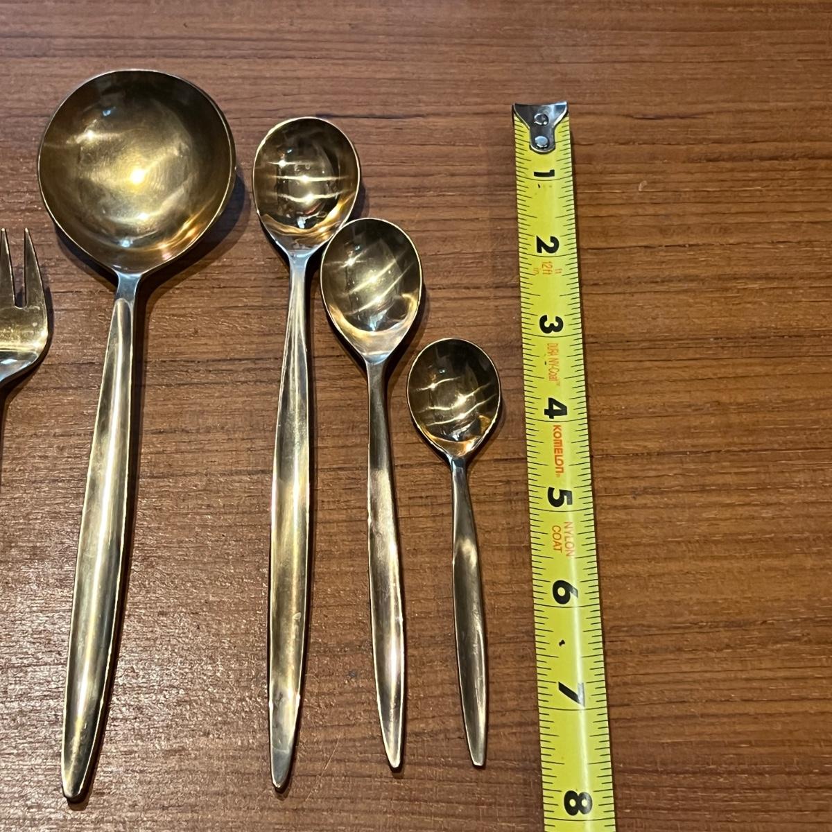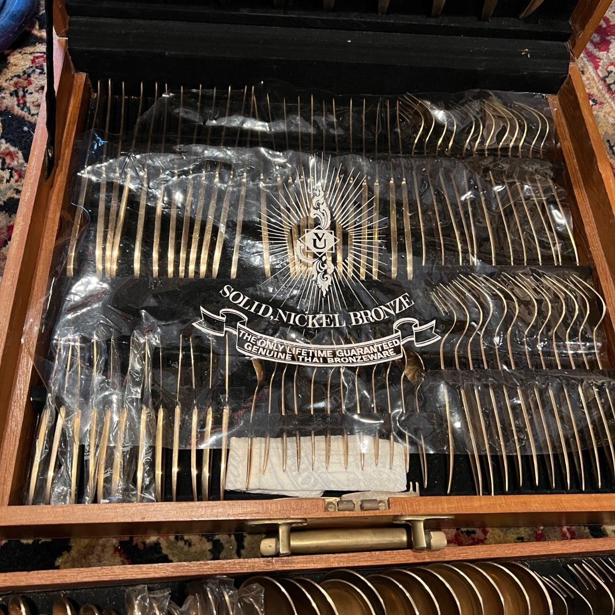 142 Pc. Vintage MCM VU Brass Flatware Set In Original Wood Box