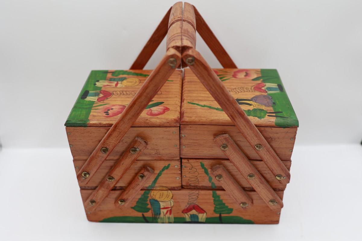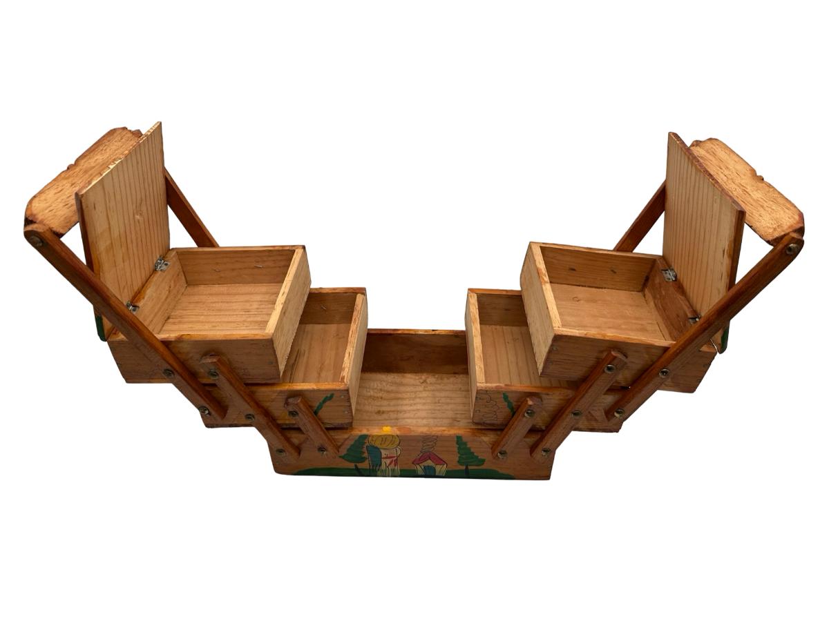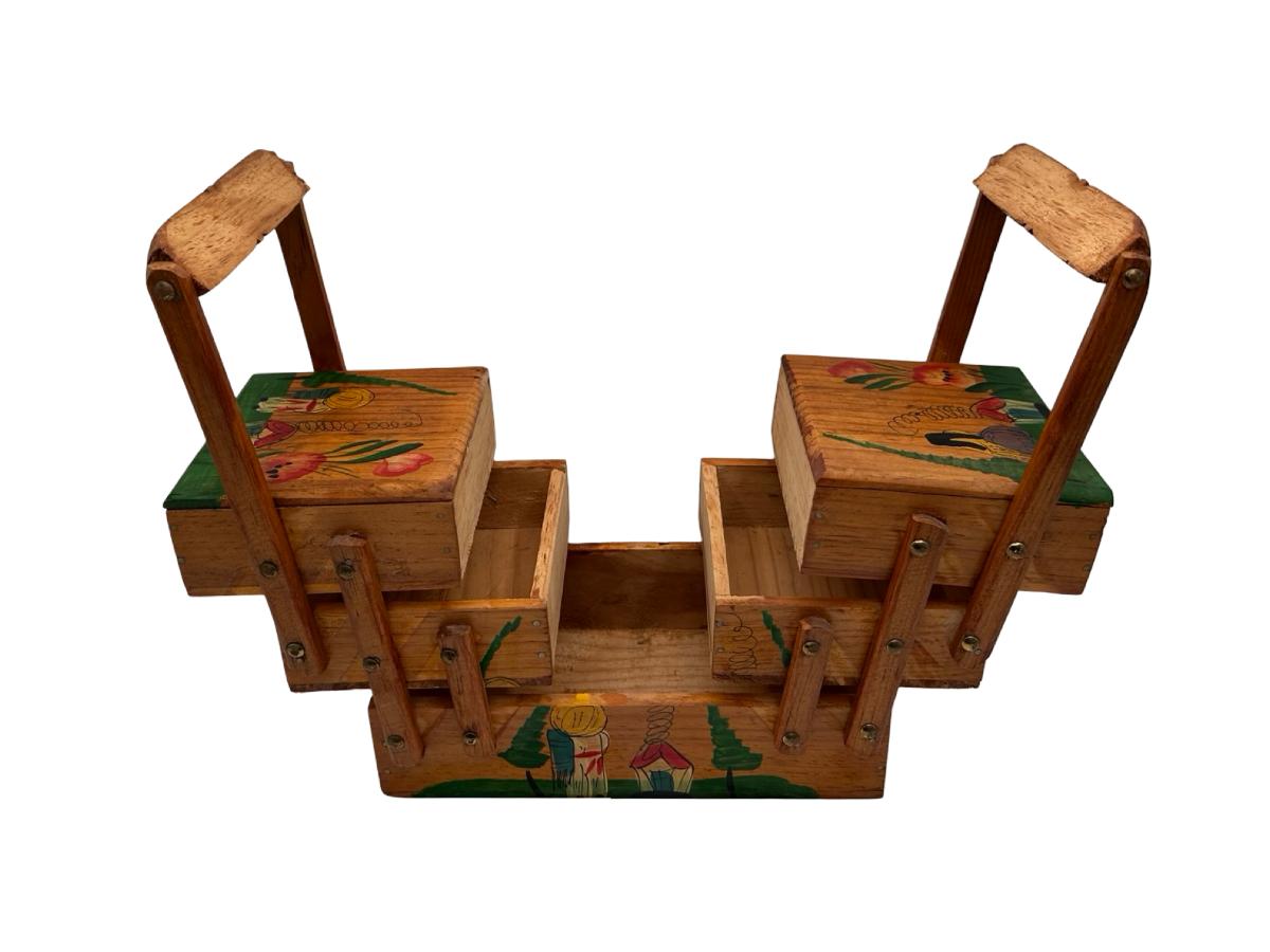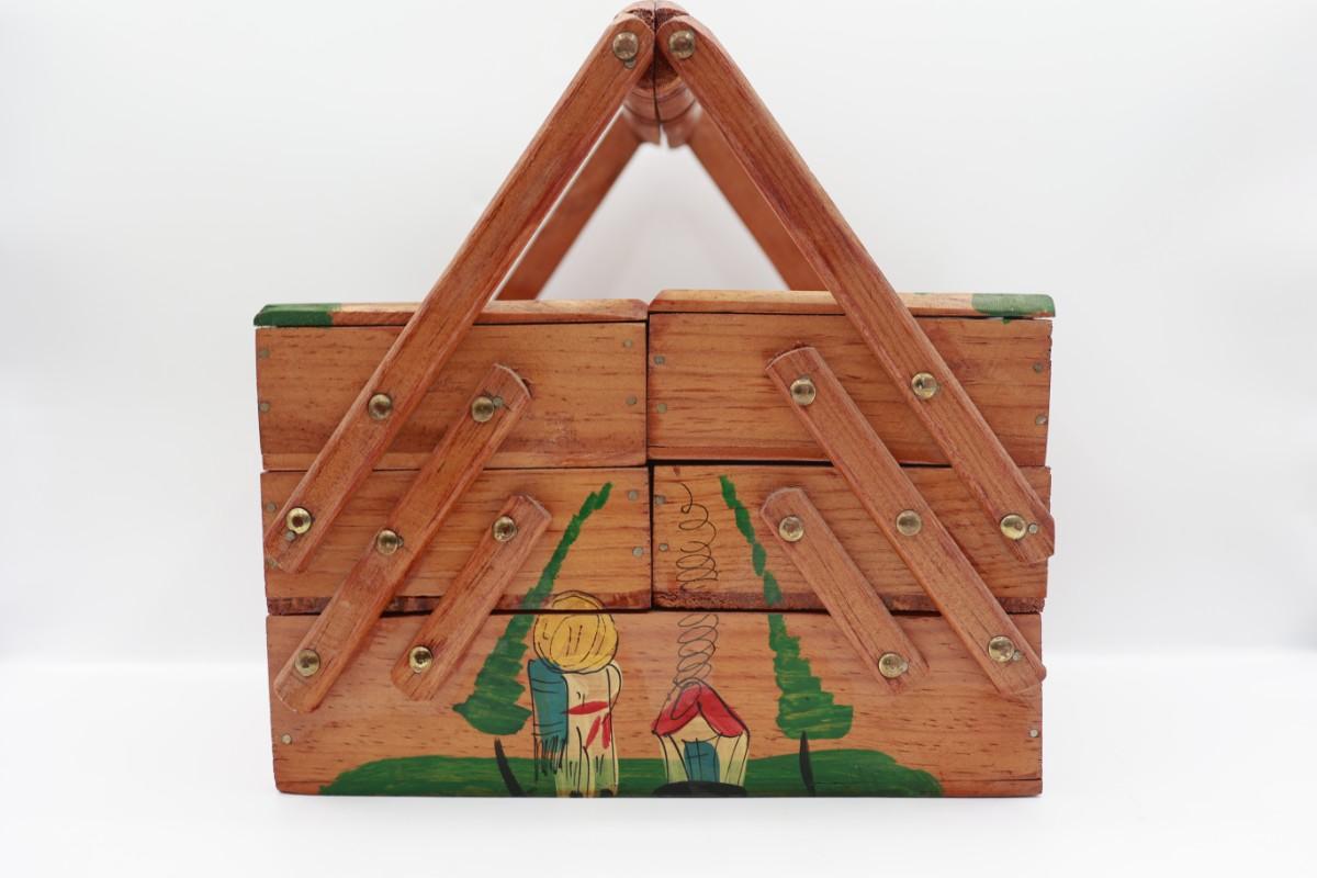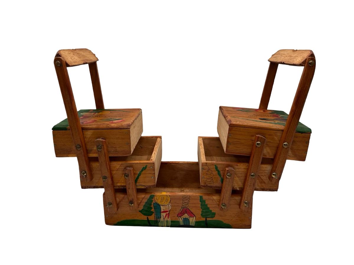 Vintage MCM Wooden Fold Out Sewing Box