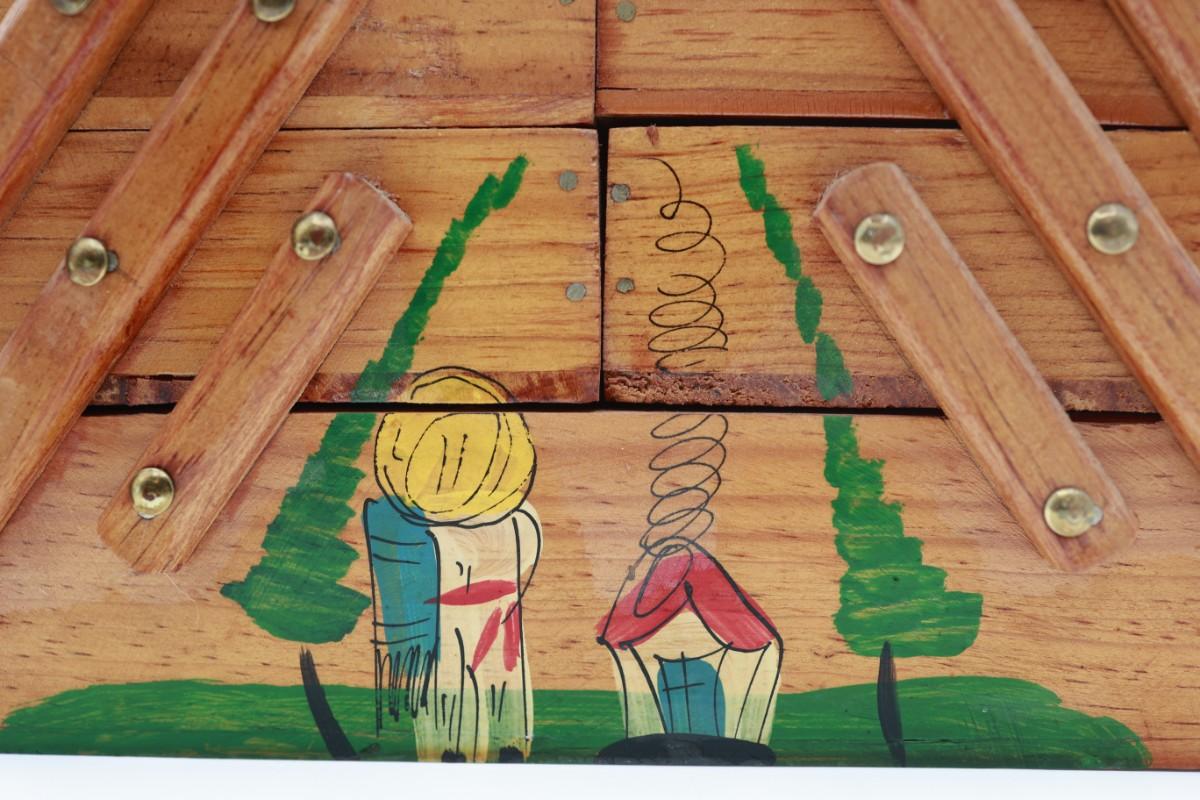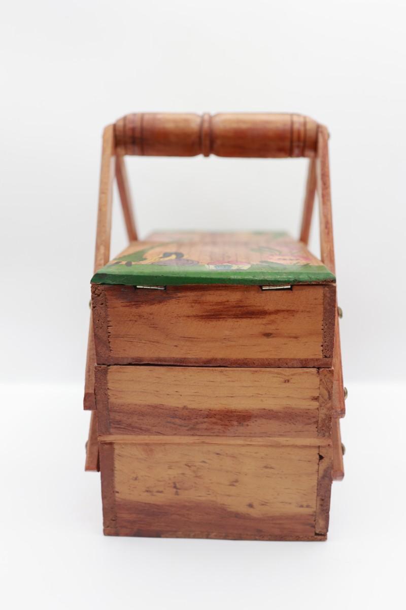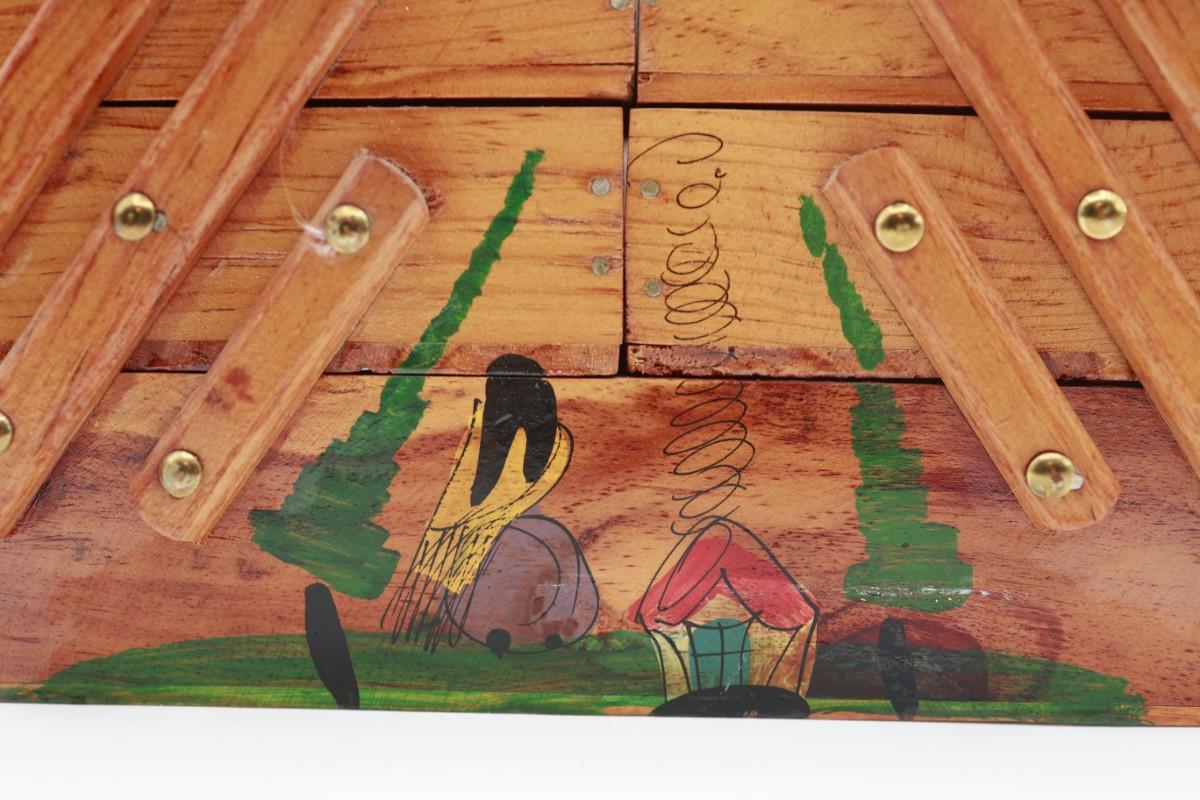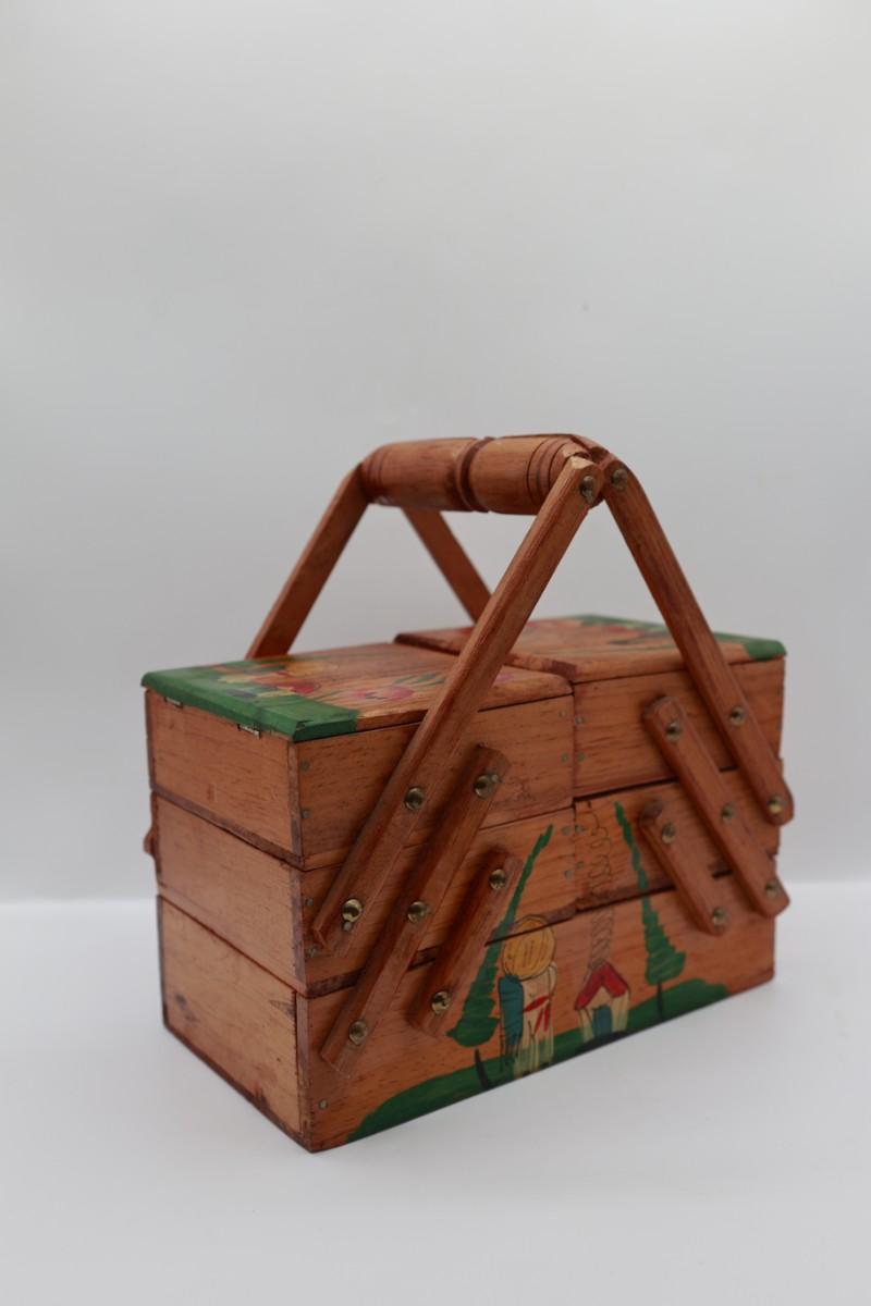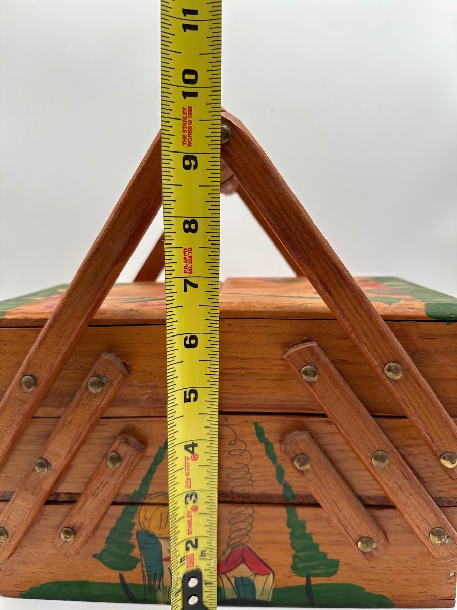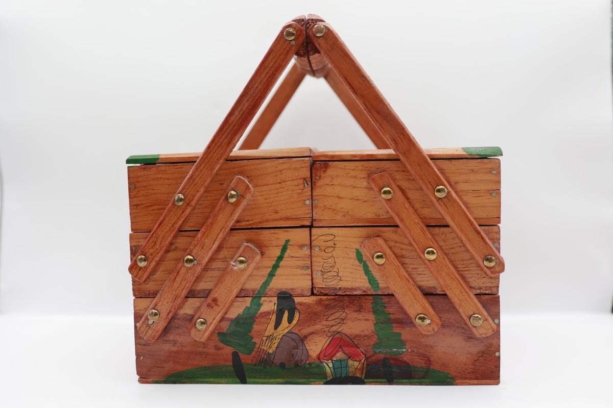 Vintage MCM Wooden Fold Out Sewing Box