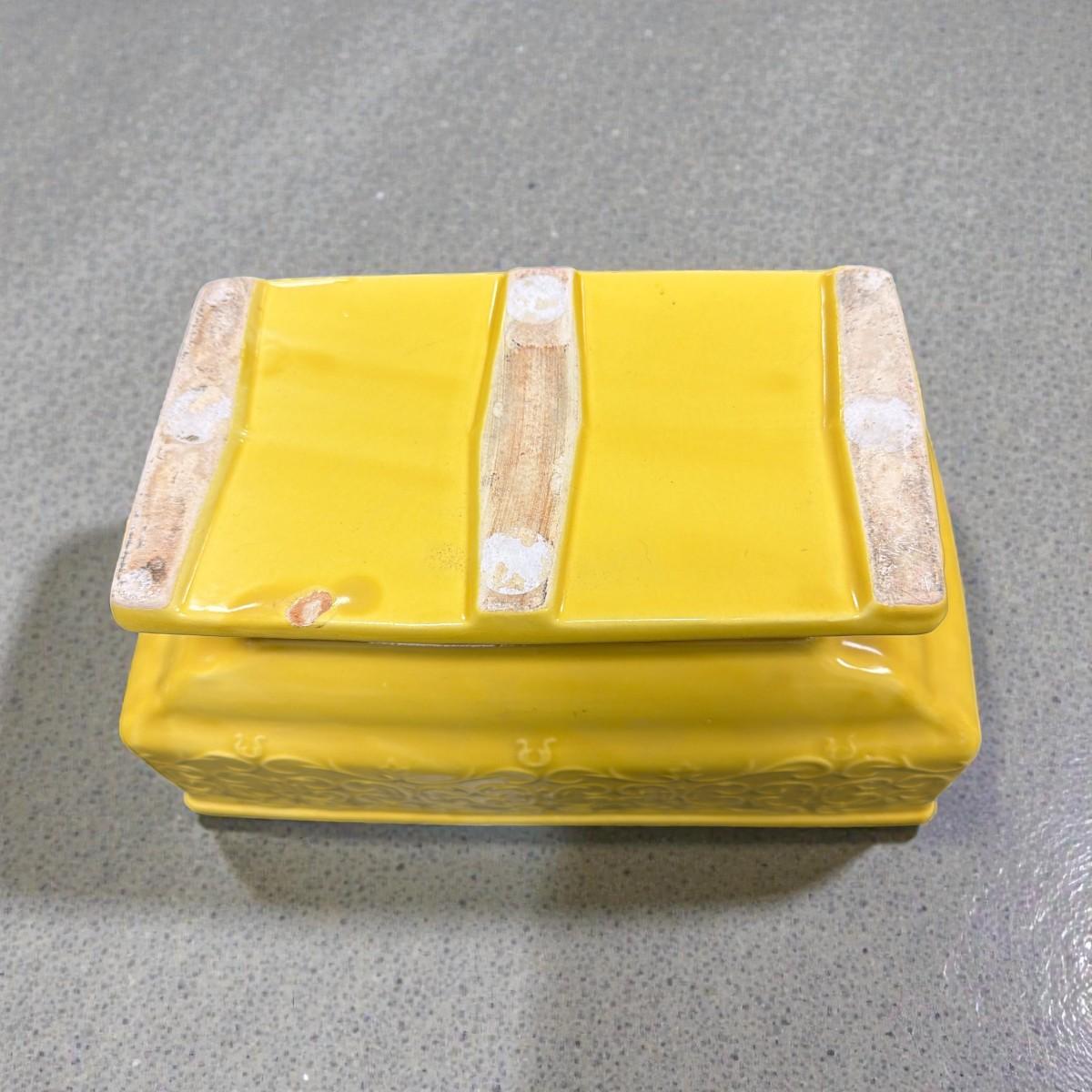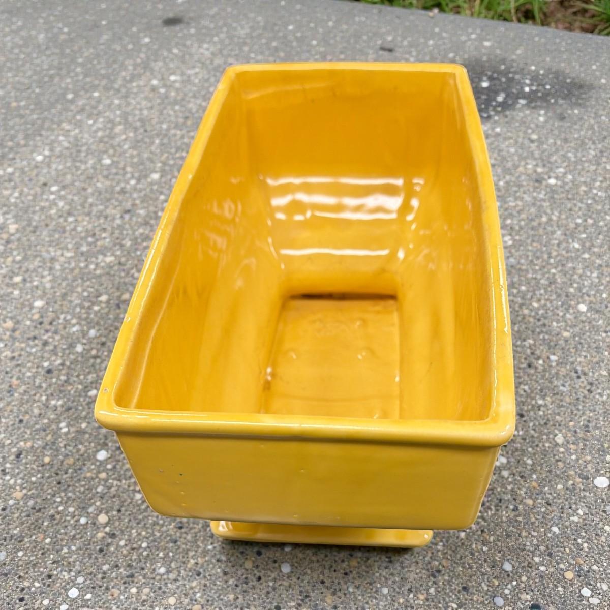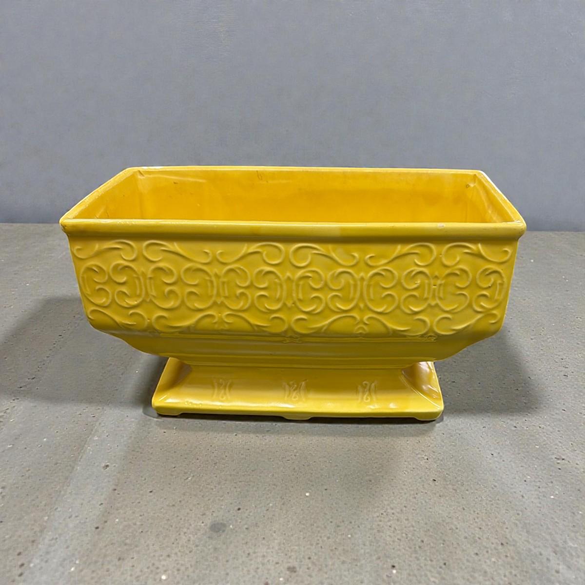 Vintage MCM Yellow Pottery Embossed Scroll Footed Base Planter
