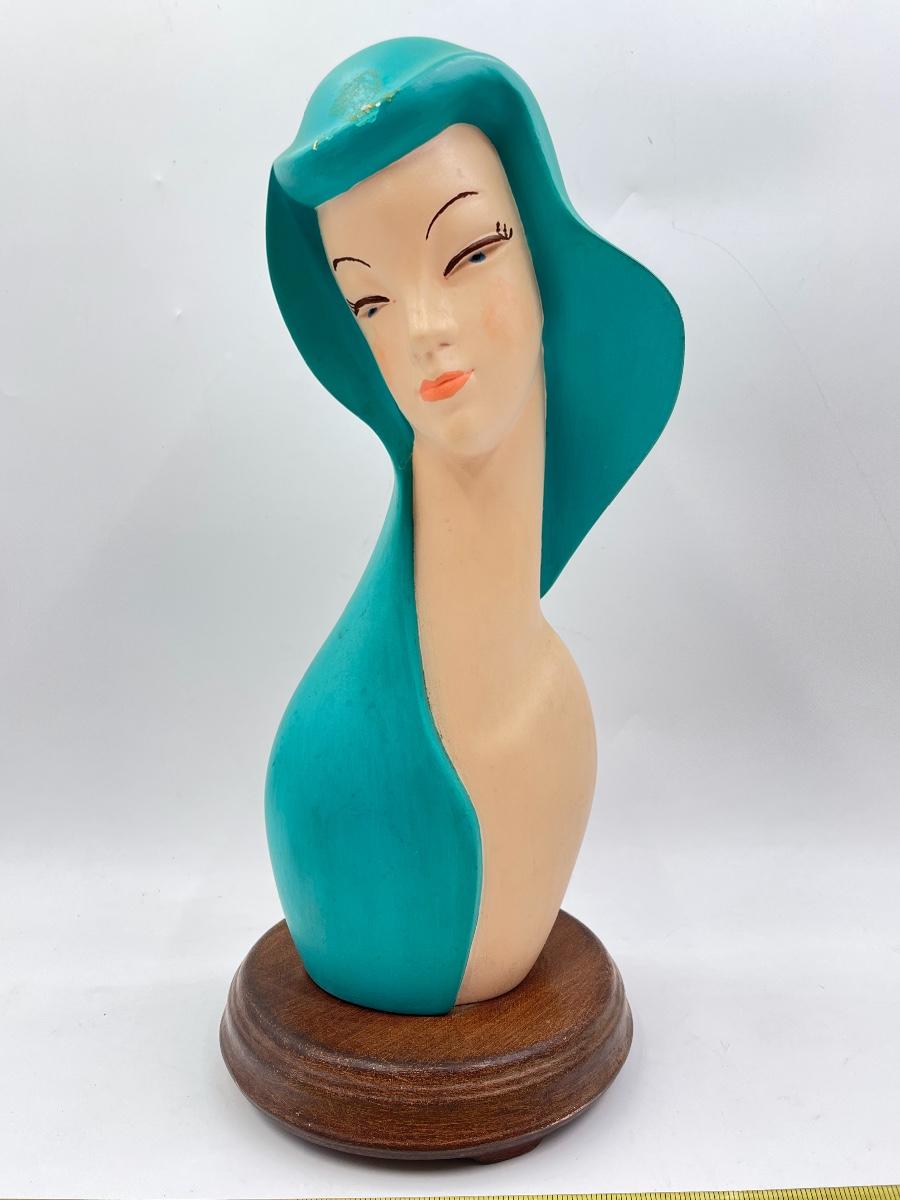 VINTAGE “MCNEES” POTTERY SCULPTURE OF TURQUOISE WOMAN