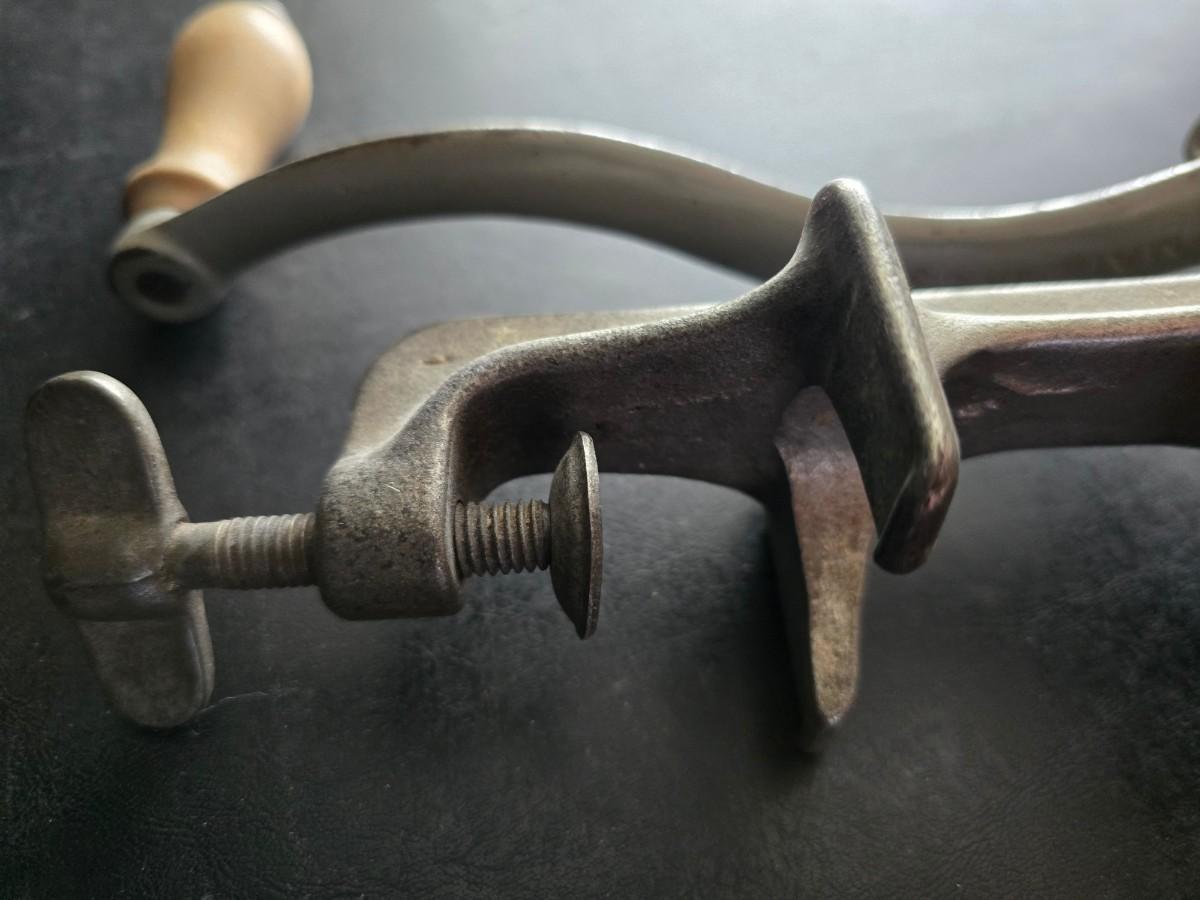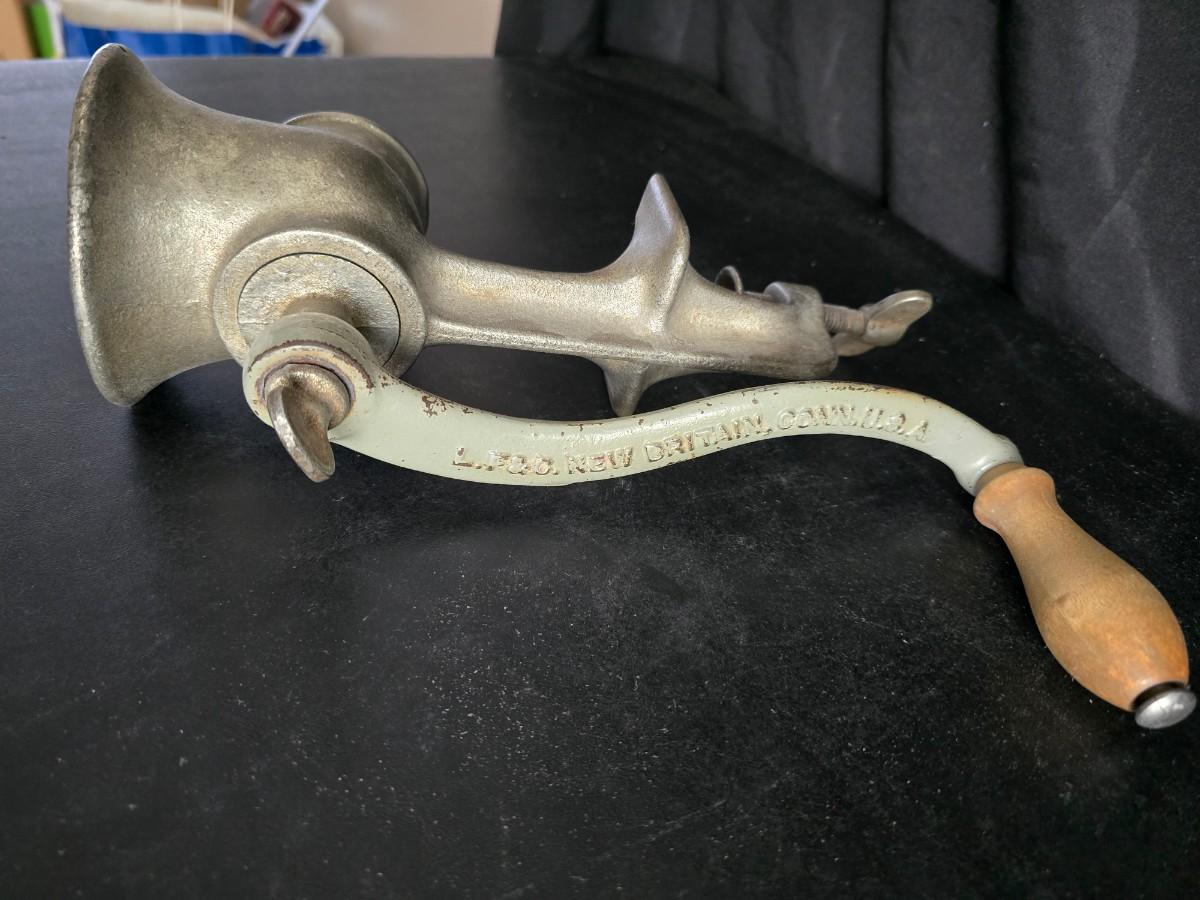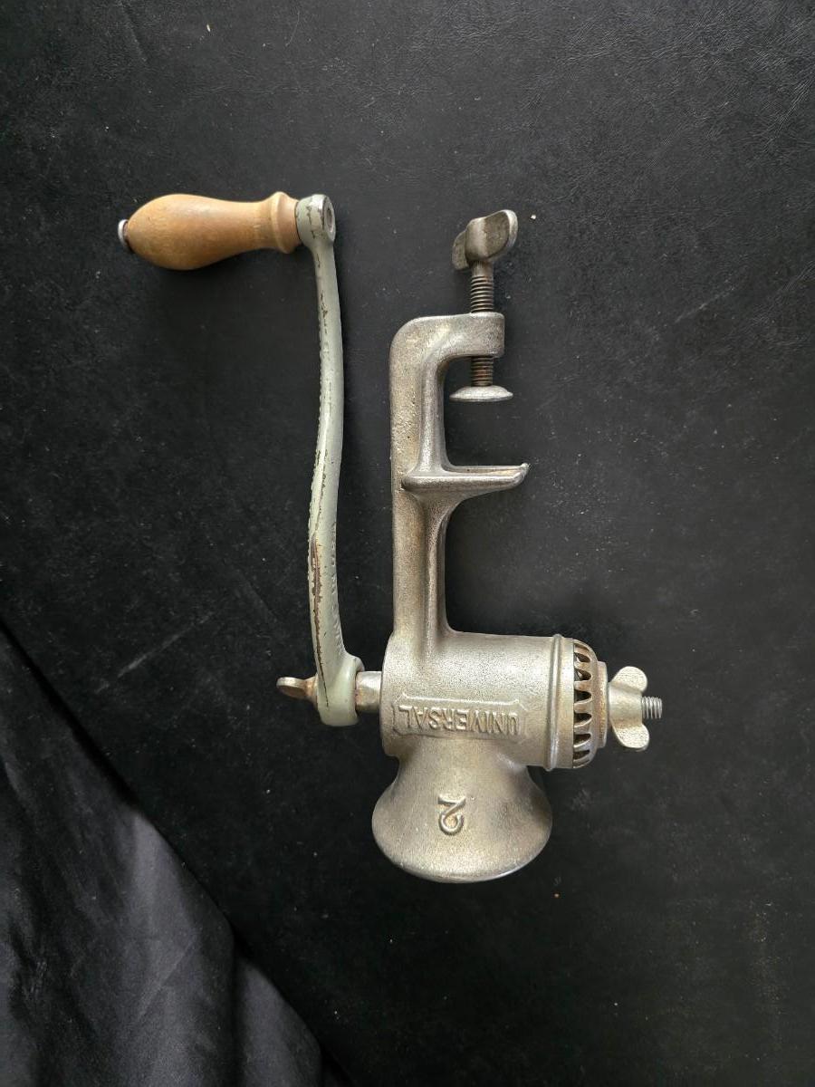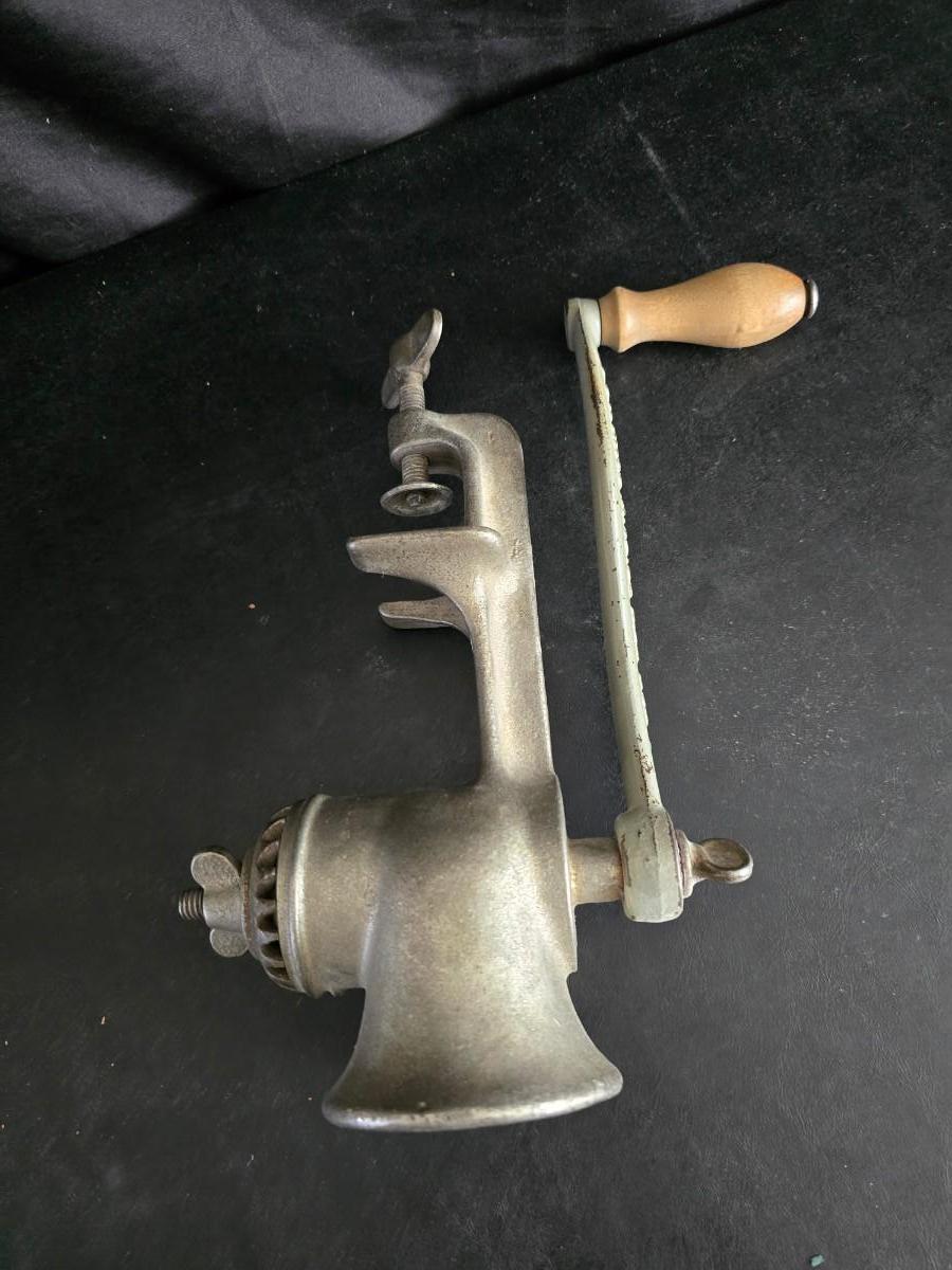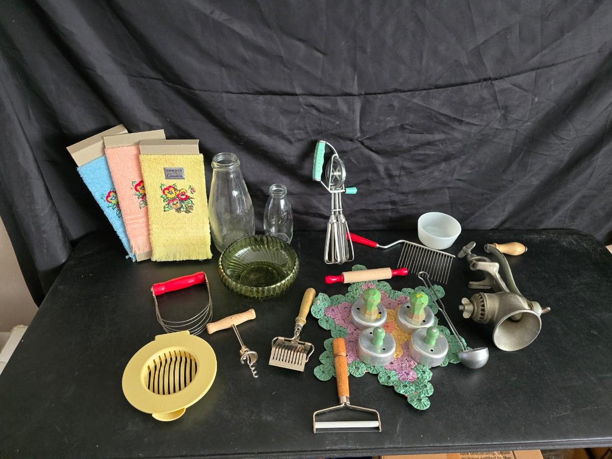 Vintage meat grinder - hand mixer - and an assortment of other kitchen items used on the farm