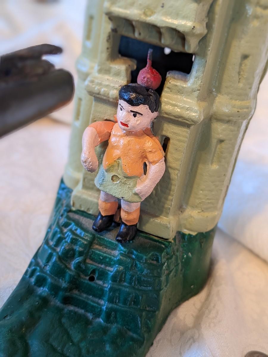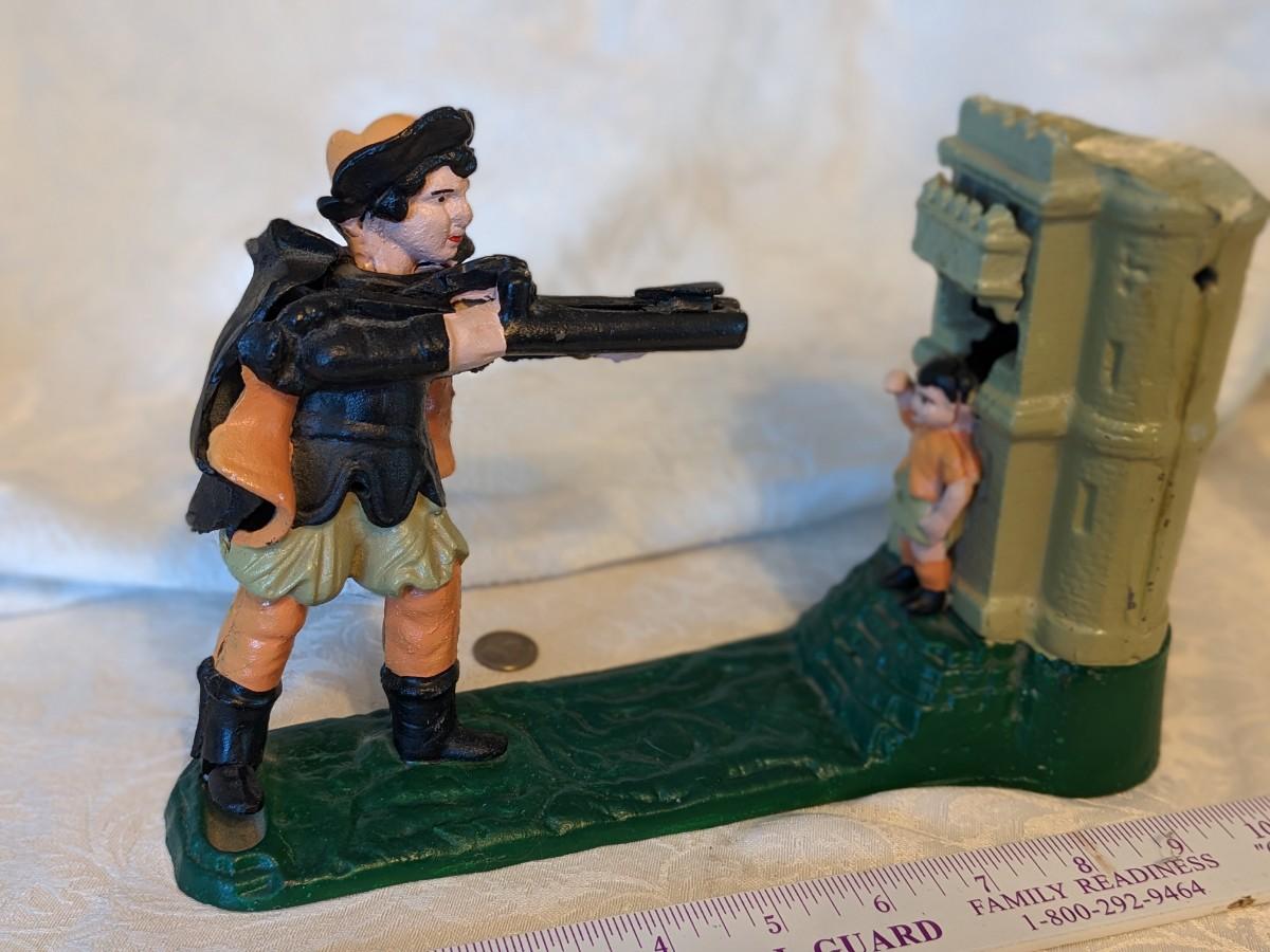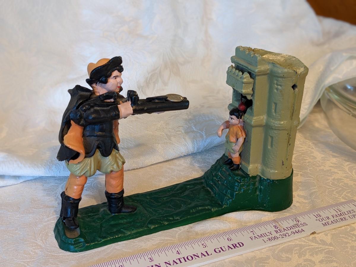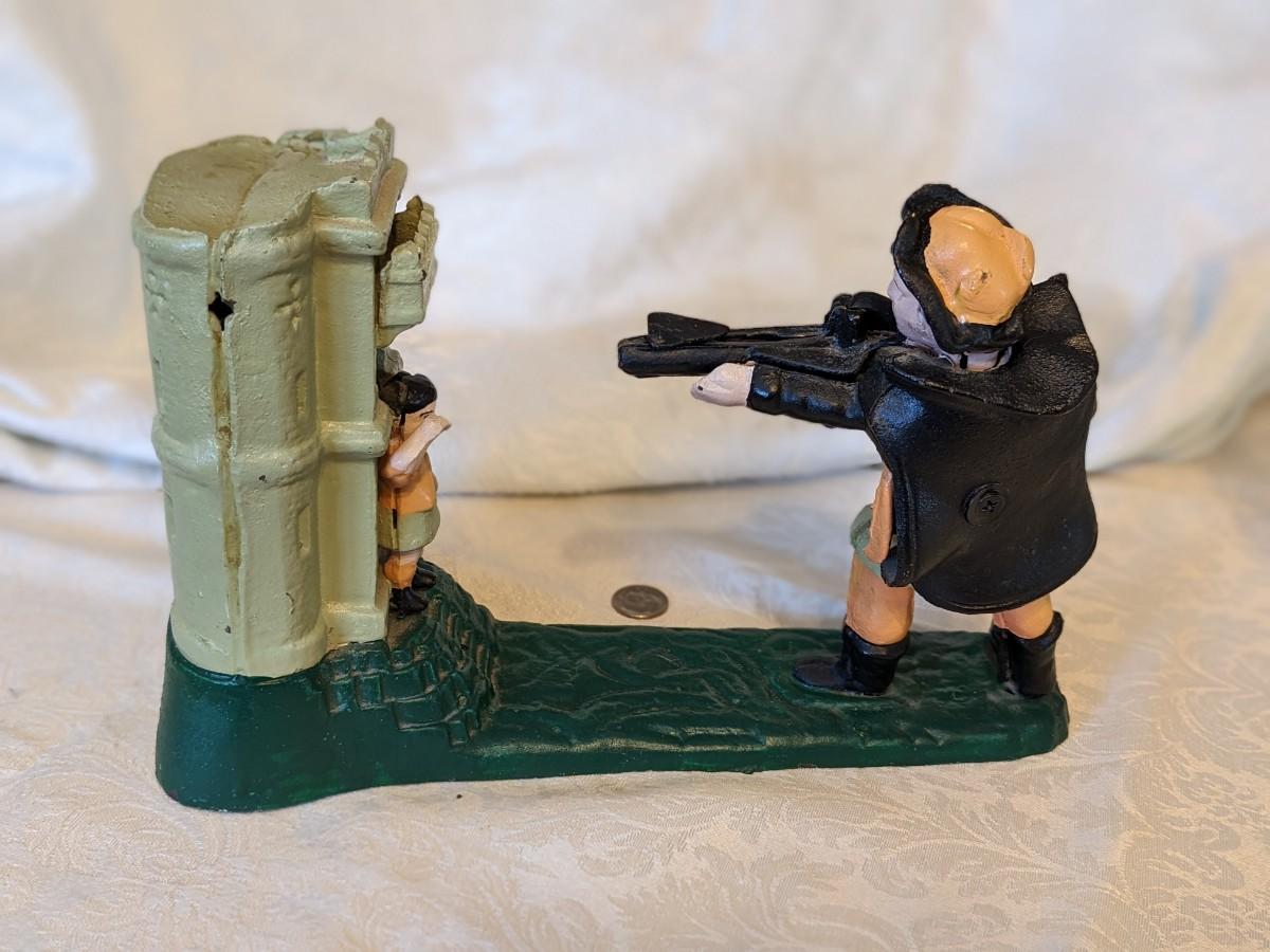 Vintage Mechanical Coin Bank Book of Knowledge William Tell