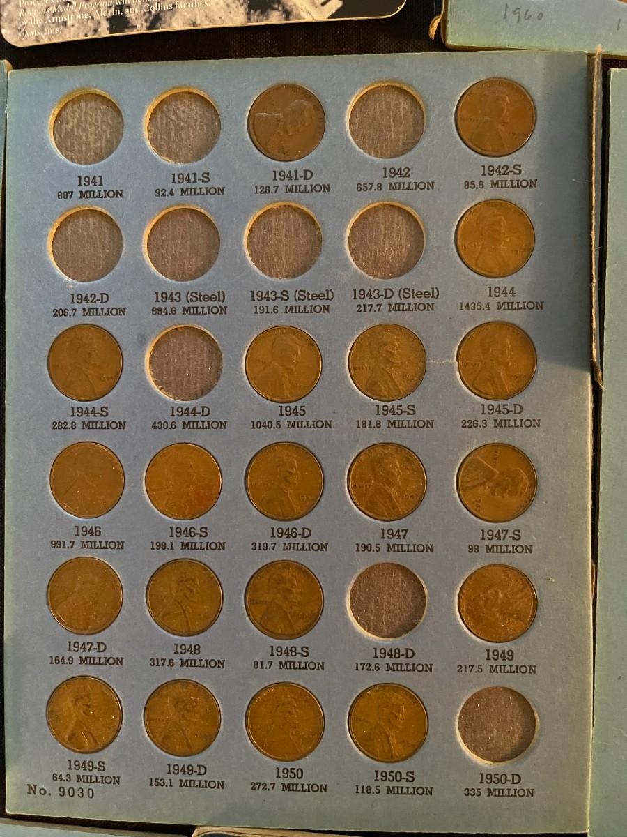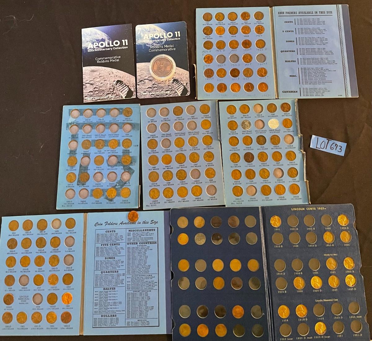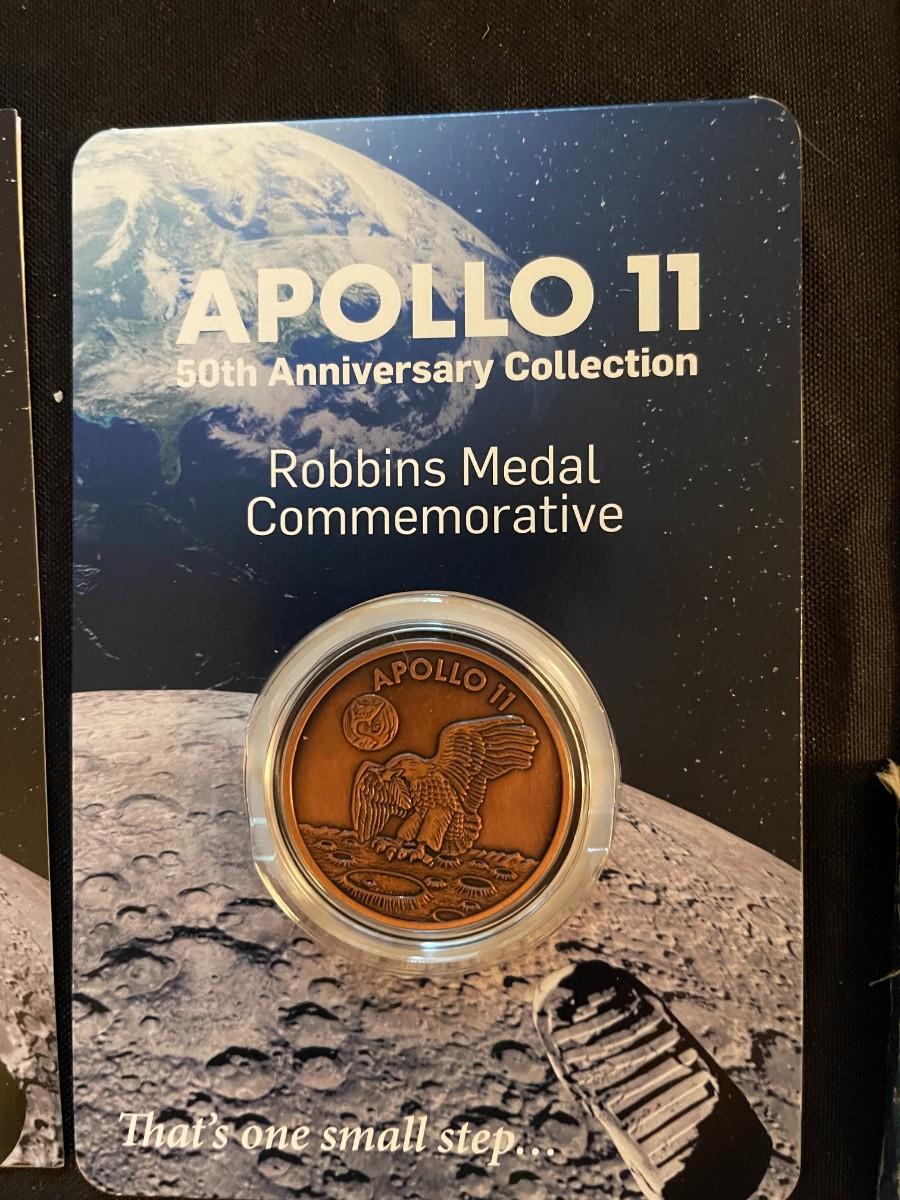 Apollo 11 50th anniversary coll. Comm. Robbins medal, (7) pages of old pennies!