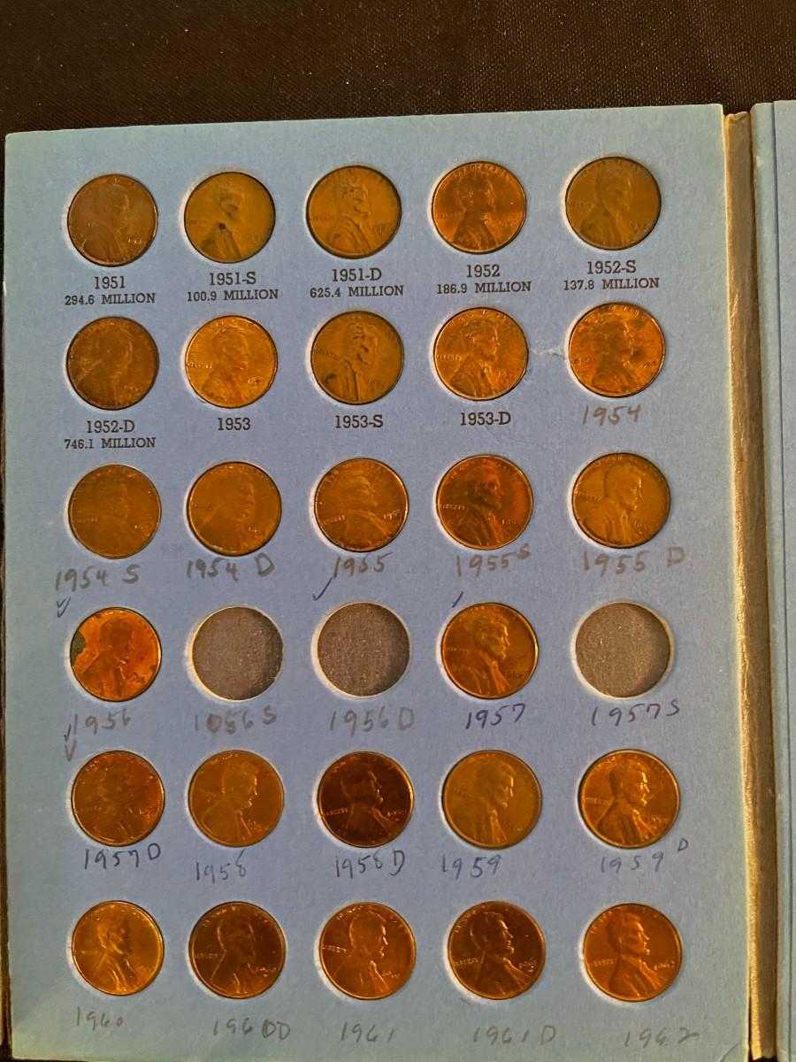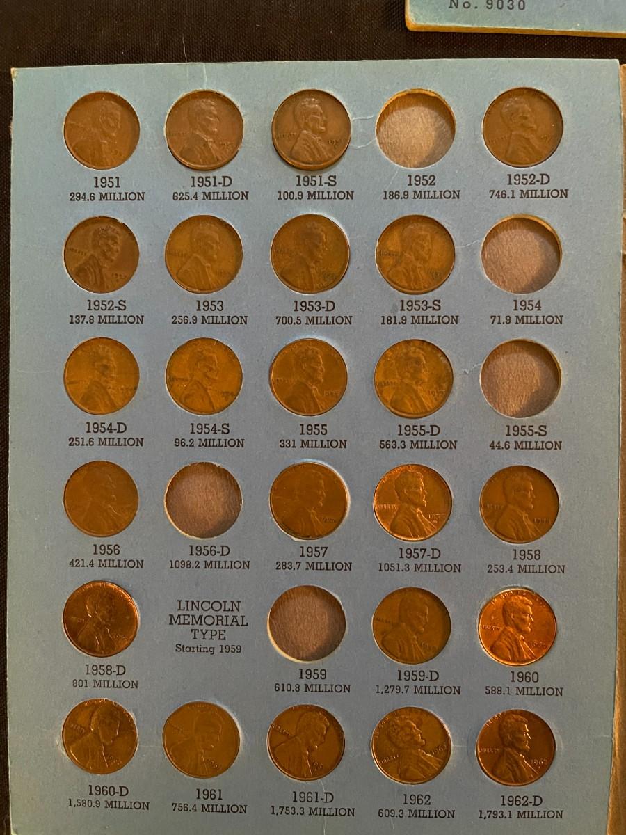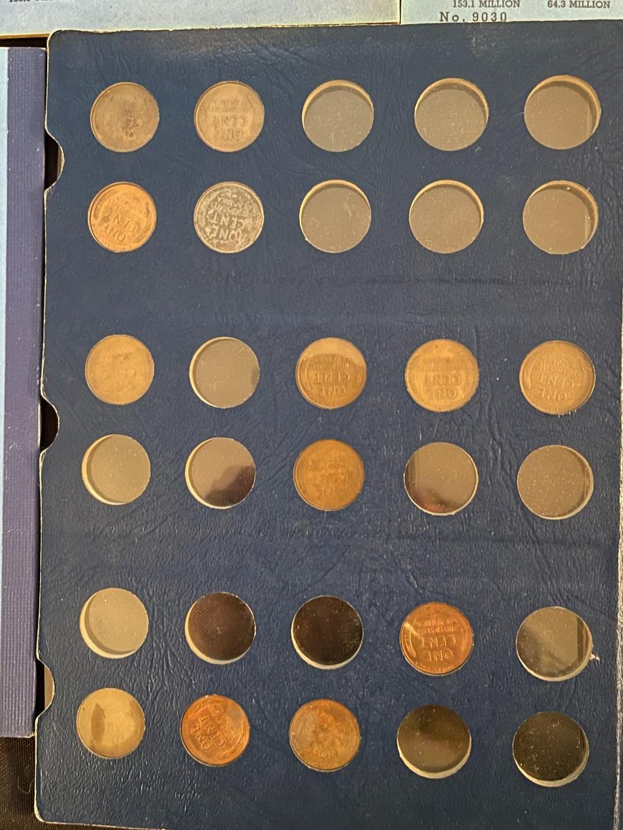Apollo 11 50th anniversary coll. Comm. Robbins medal, (7) pages of old pennies!