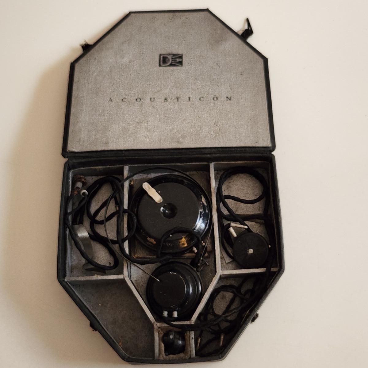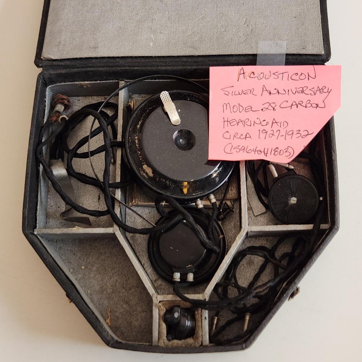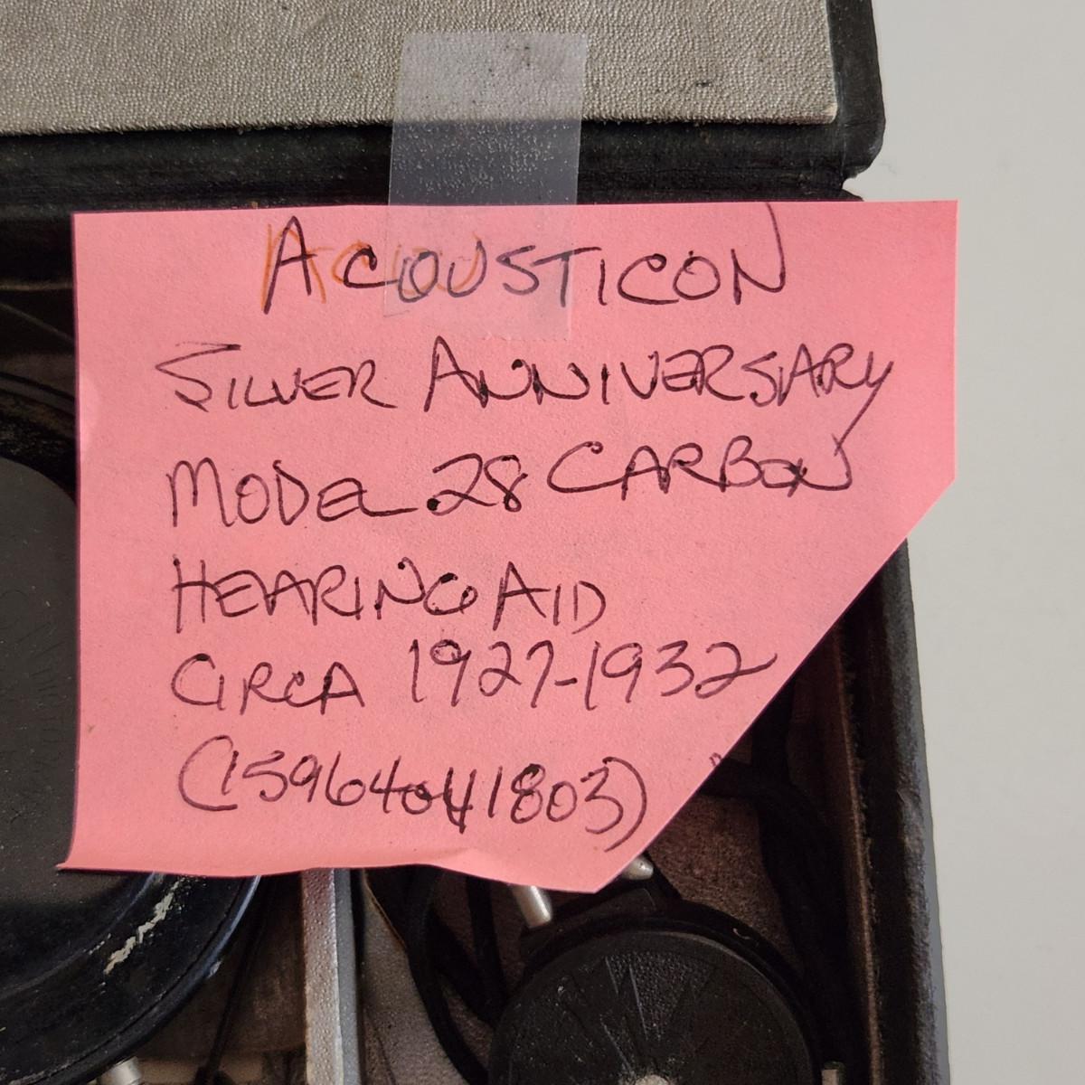 This auction lot is for a Vintage Medical Acousticon. This is a Silver Anniversary Acousticon, Model 28 Carbon Hearing Aid. This unit is circa 1927-1932. Where you gonna find another - can you hear me yet - maybe you need this more than you know!