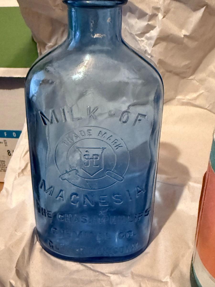 Vintage Medicine Milk of Magnesia Glass Bottle: In great condition, this vintage glass bottle for Milk of Magnesia adds a charming touch to any collection. It’s a blend of nostalgia and practicality for collectors of vintage medical items.