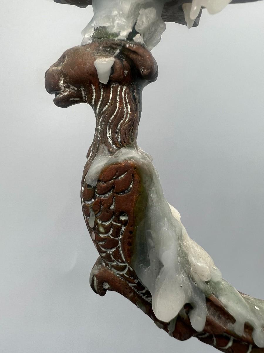 Vintage Medieval Style Gothic Church Brass Serpent Dragon Religious Candle Holder