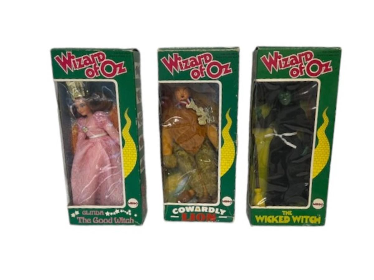 Includes Wicked Witch, Cowardly Lion, and Glinda the Good Witch. Total of 3 pieces. In original boxes. Shipping dimensions: 10" x 4.5" x 6". [BS]