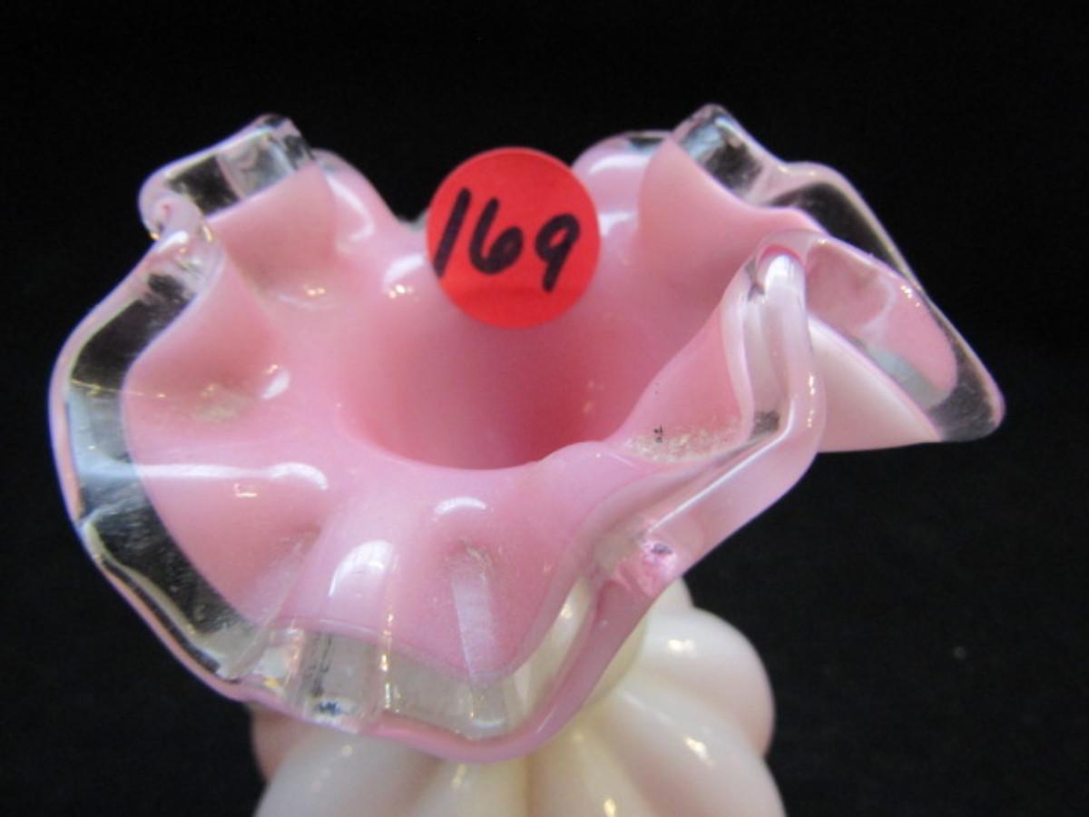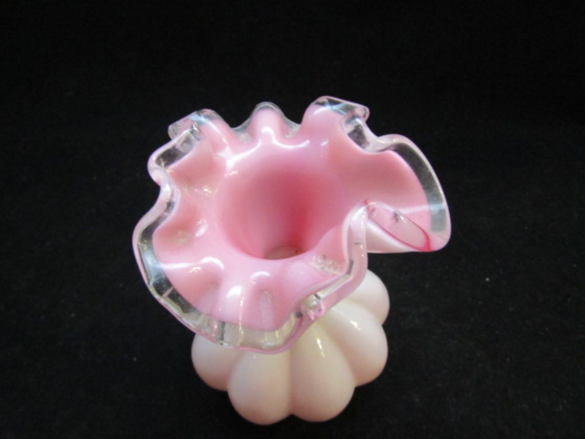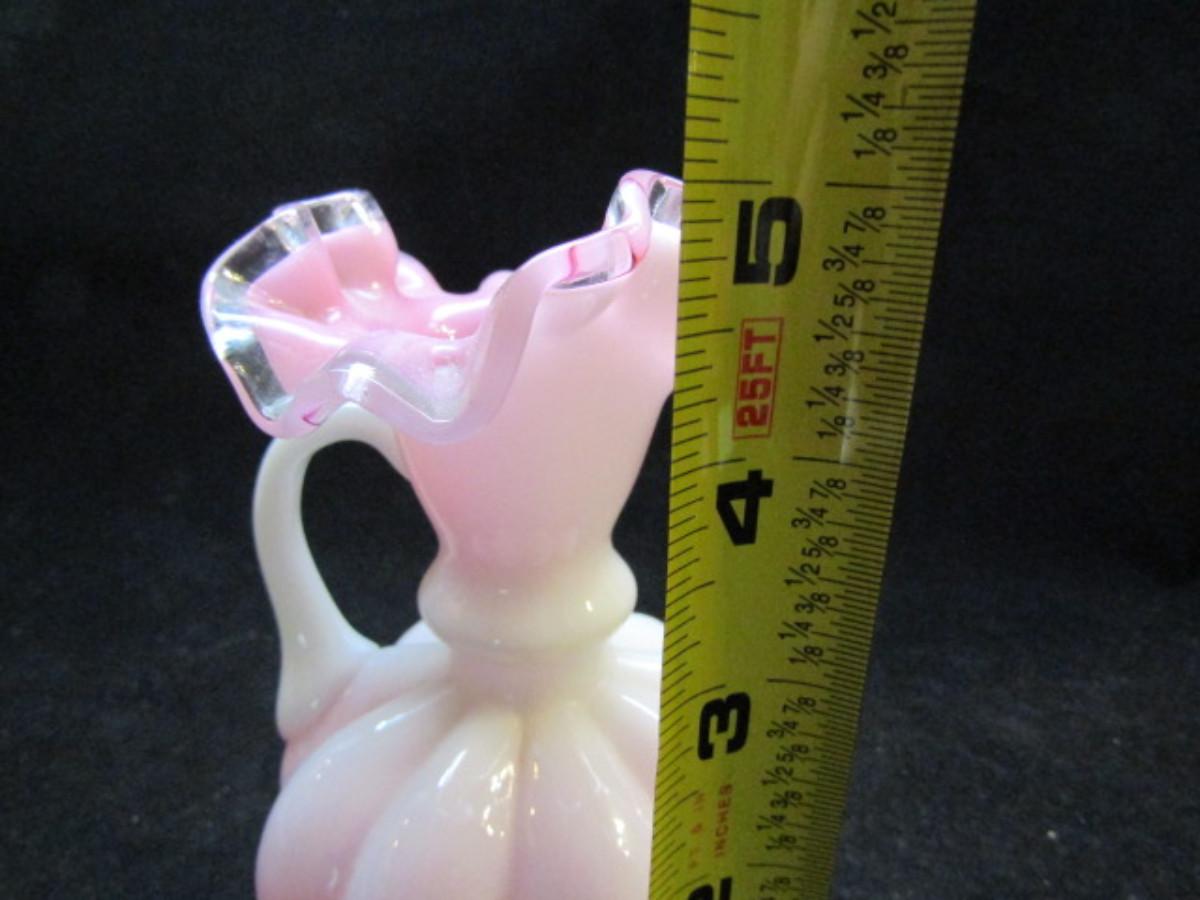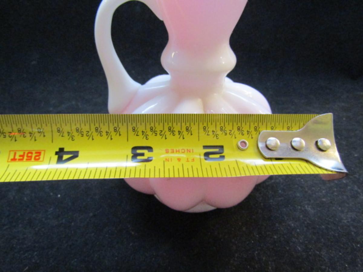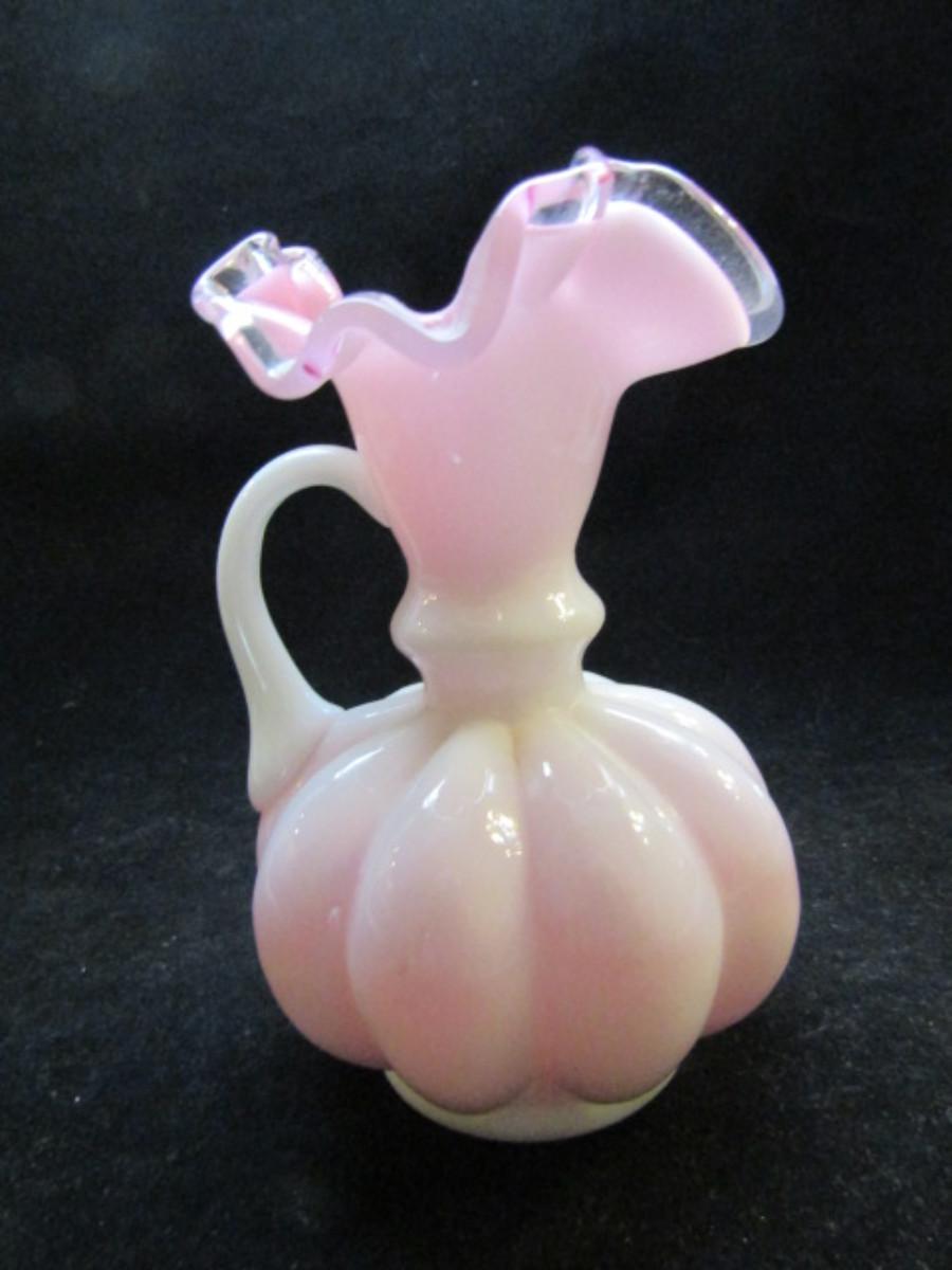 Vintage Melon Shaped Pitcher with Ruffled Top- White on Pink- Possibly Fenton (#169)