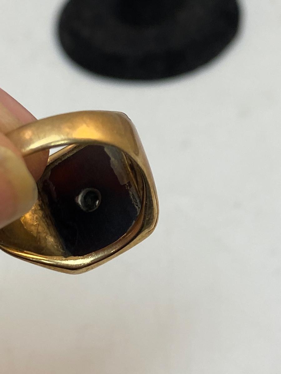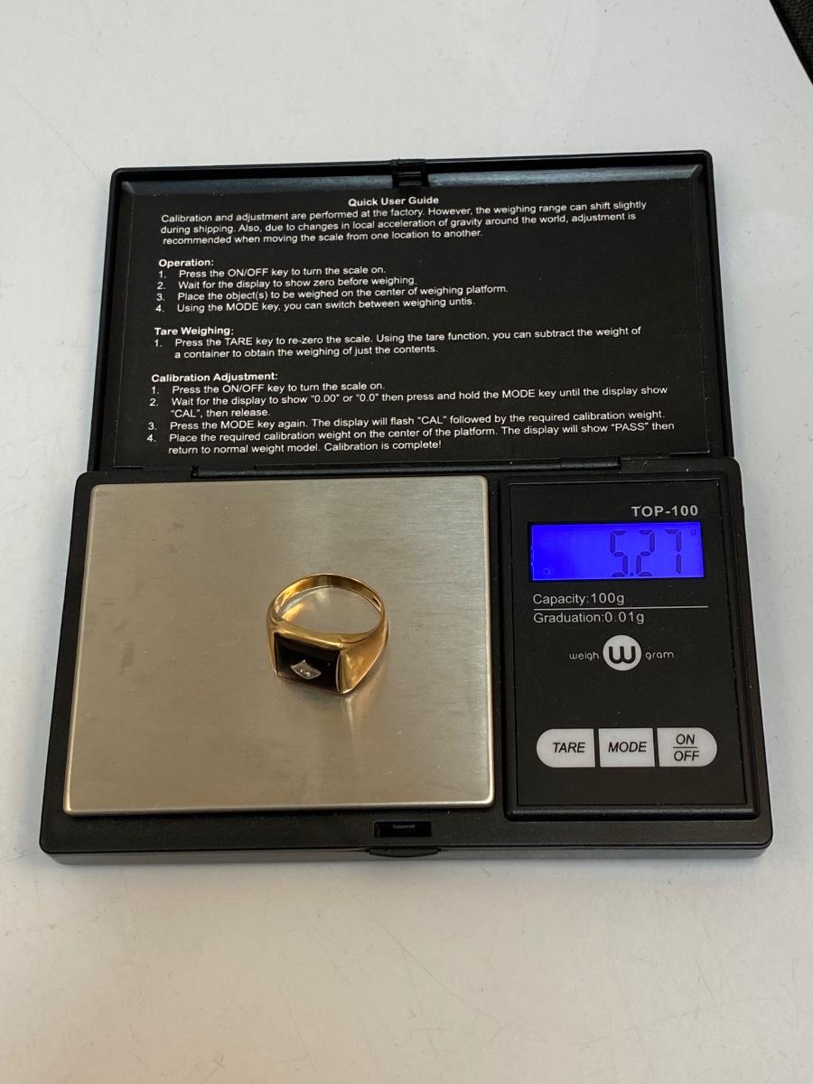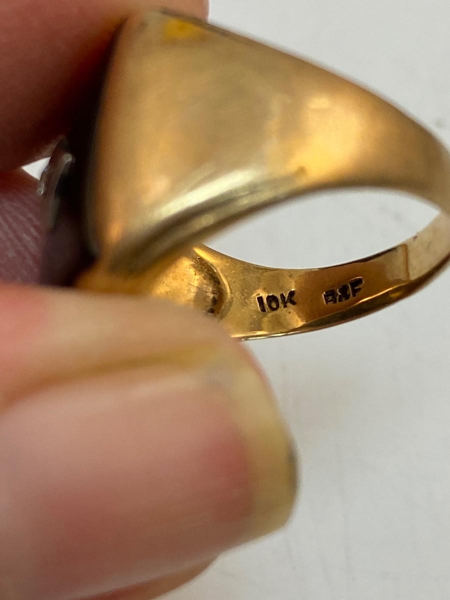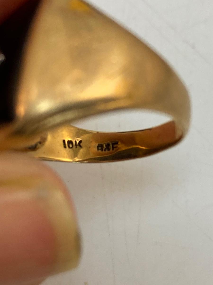 Vintage Men's 10k Yellow Gold & Onyx Ring with Diamond. In good vintage condition. Stamped inside.