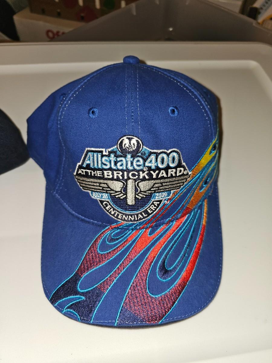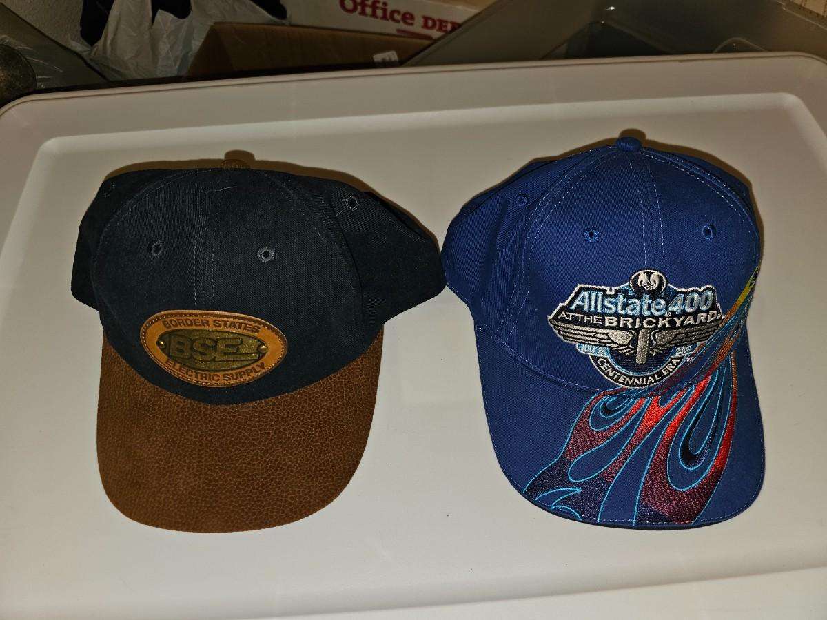 Vintage BSE K Products made in USA Leather/Denim Hat and Nascar All State 400 At The Brickyard Authentic Hat from live event Made in USA... like new condition.