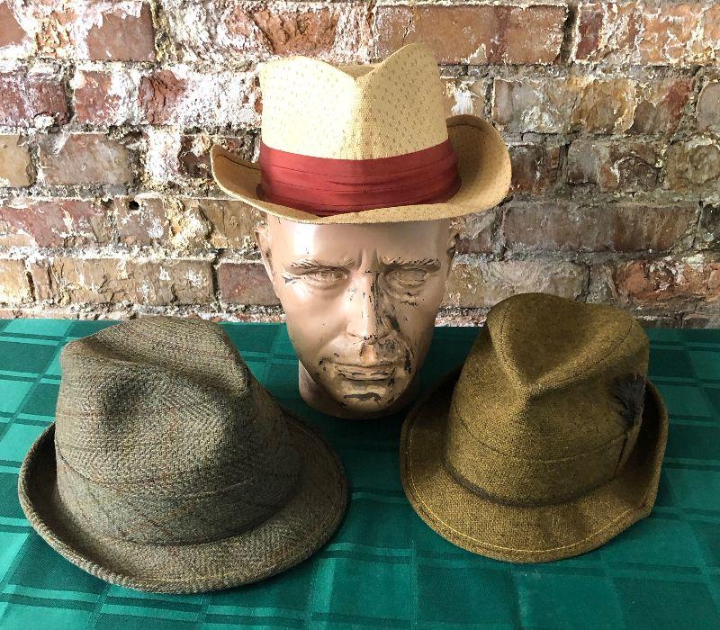 Here are a lot of vintage men's hats..winter and summer..fedora style...Does not include display head...