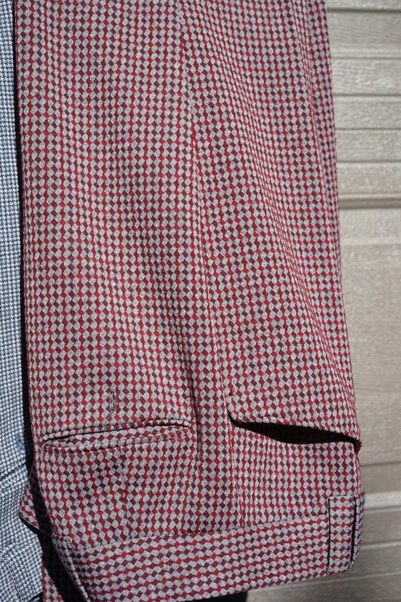 three pairs of men's vintage trousers in tweed pattern and the polyester orange.