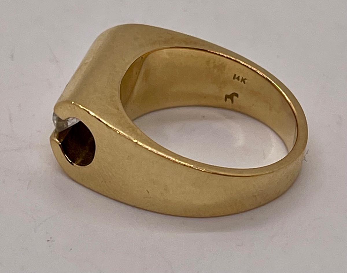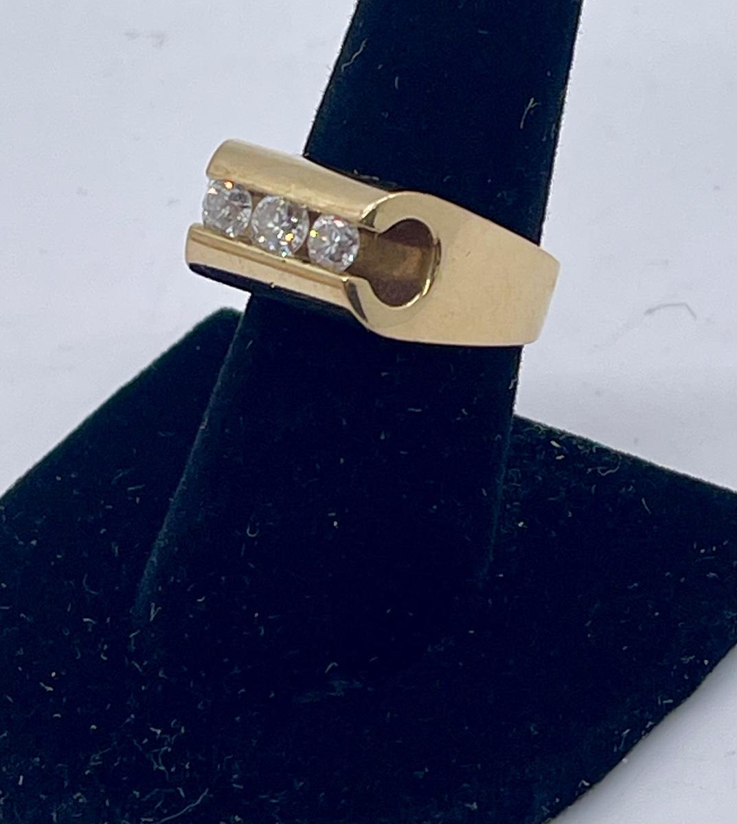 Vintage Men's Yellow Gold 14K Ring w/ 3 European cut Diamonds pinkie ring size 8