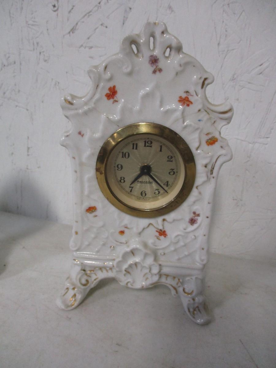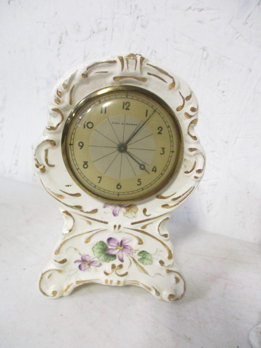 Vintage Mercedes Ceramic Mantel, Desk Clock - Made in Germany & Park Sherman Mantle Clock