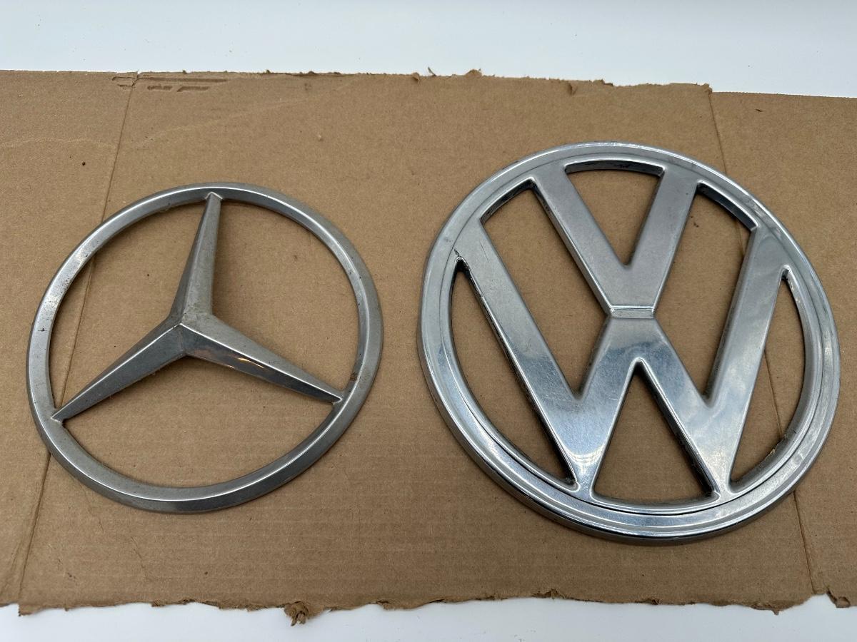 Vintage Mercedes-Benz & Volkswagen Metal Auto Emblems – Pair