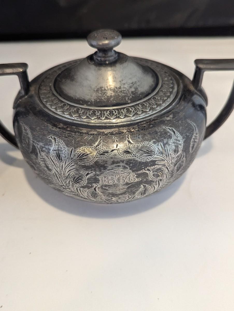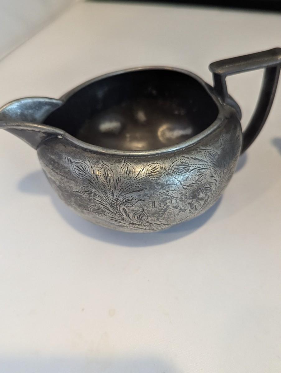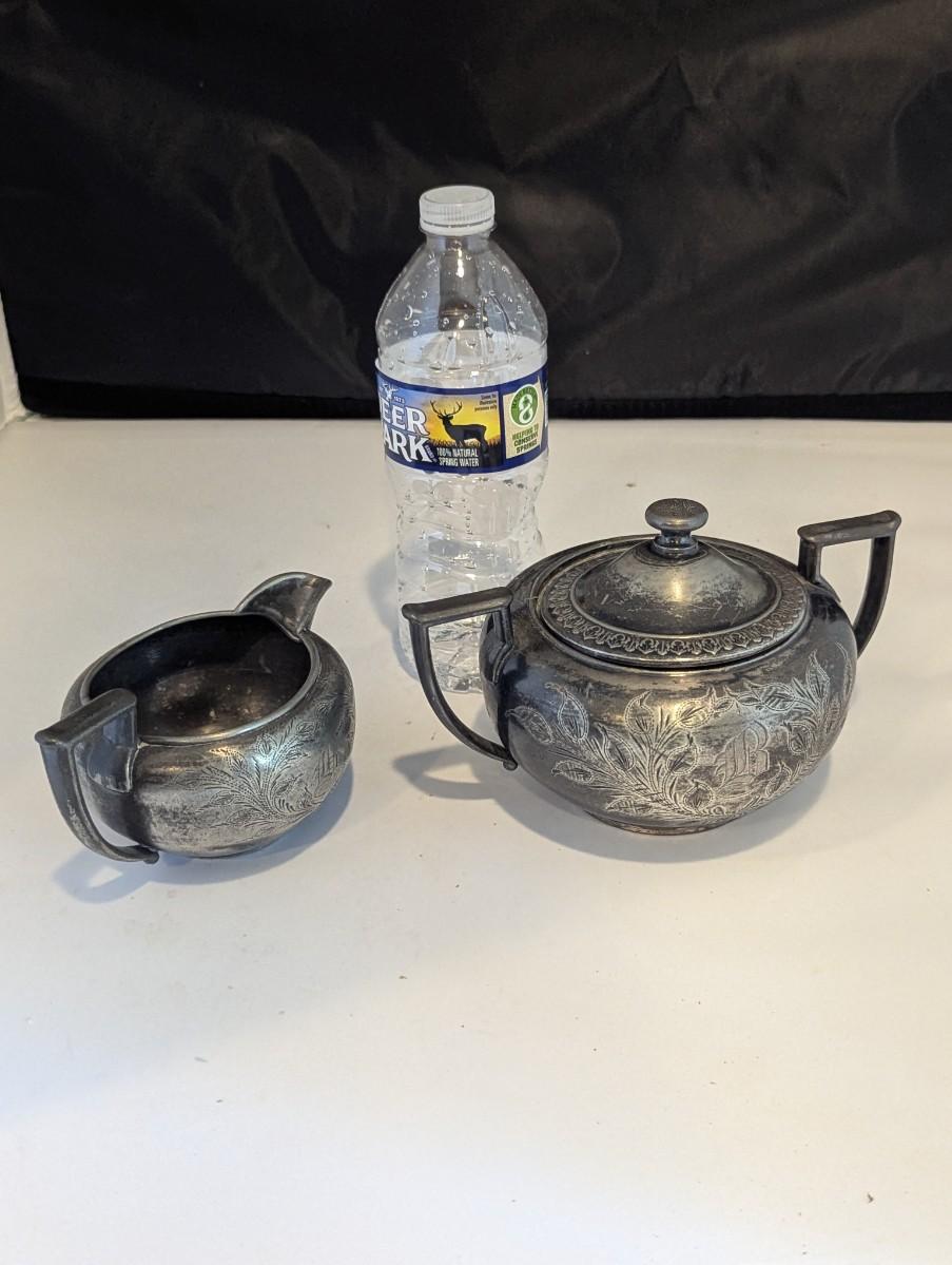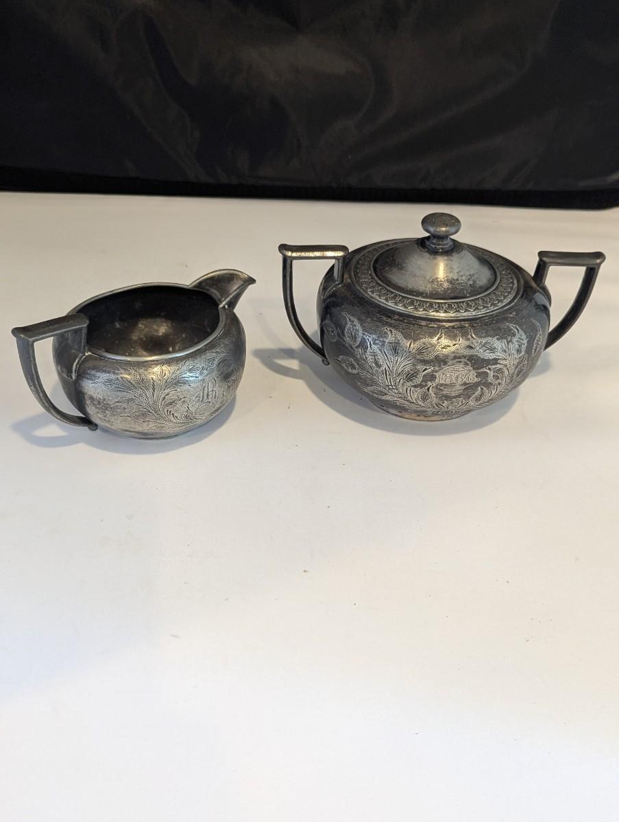 Vintage Meriden Company 1862 Sugar Bowl & Creamer Etched Designs (DR)