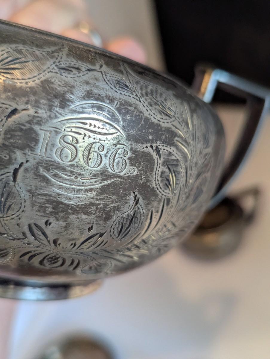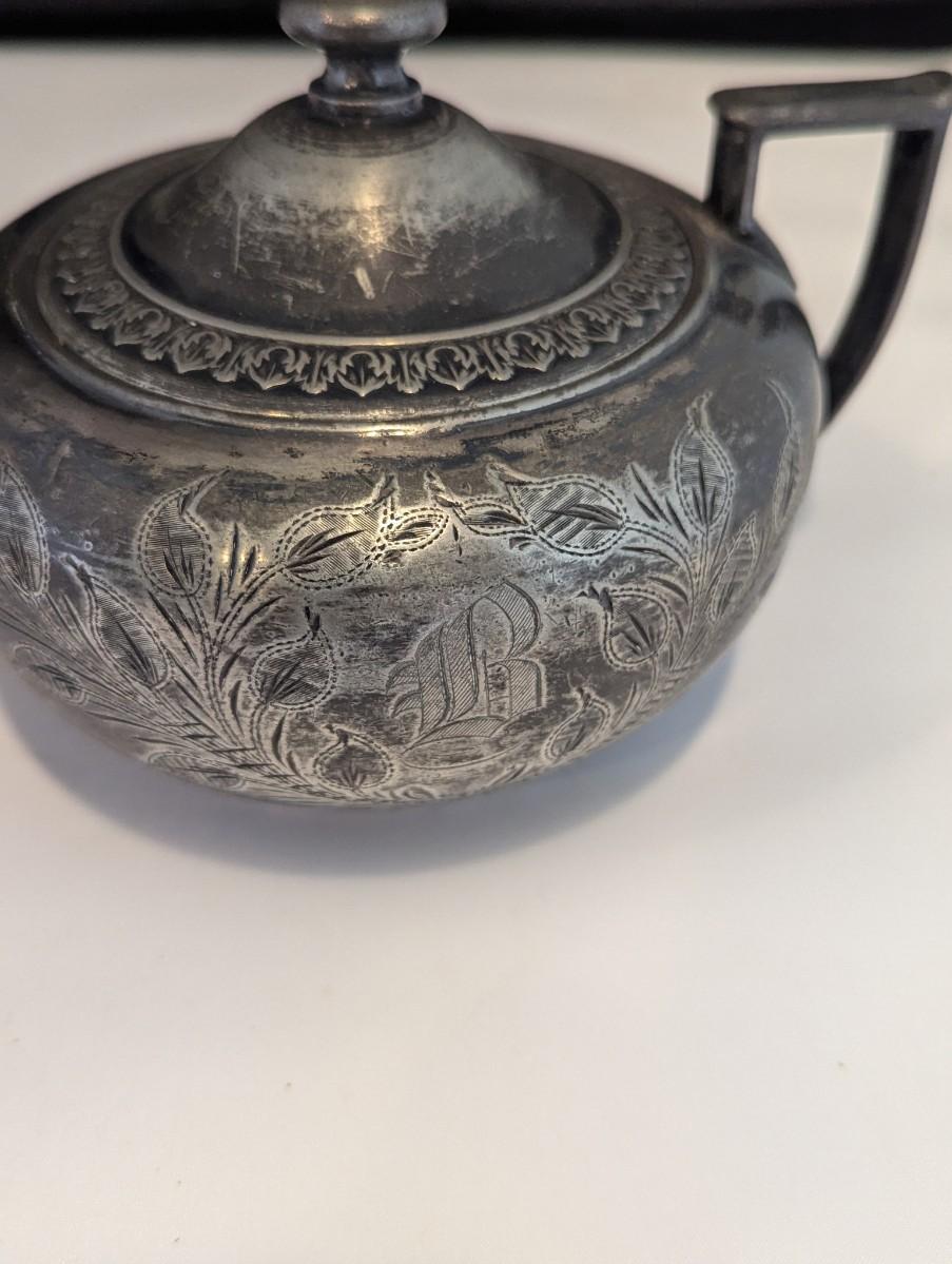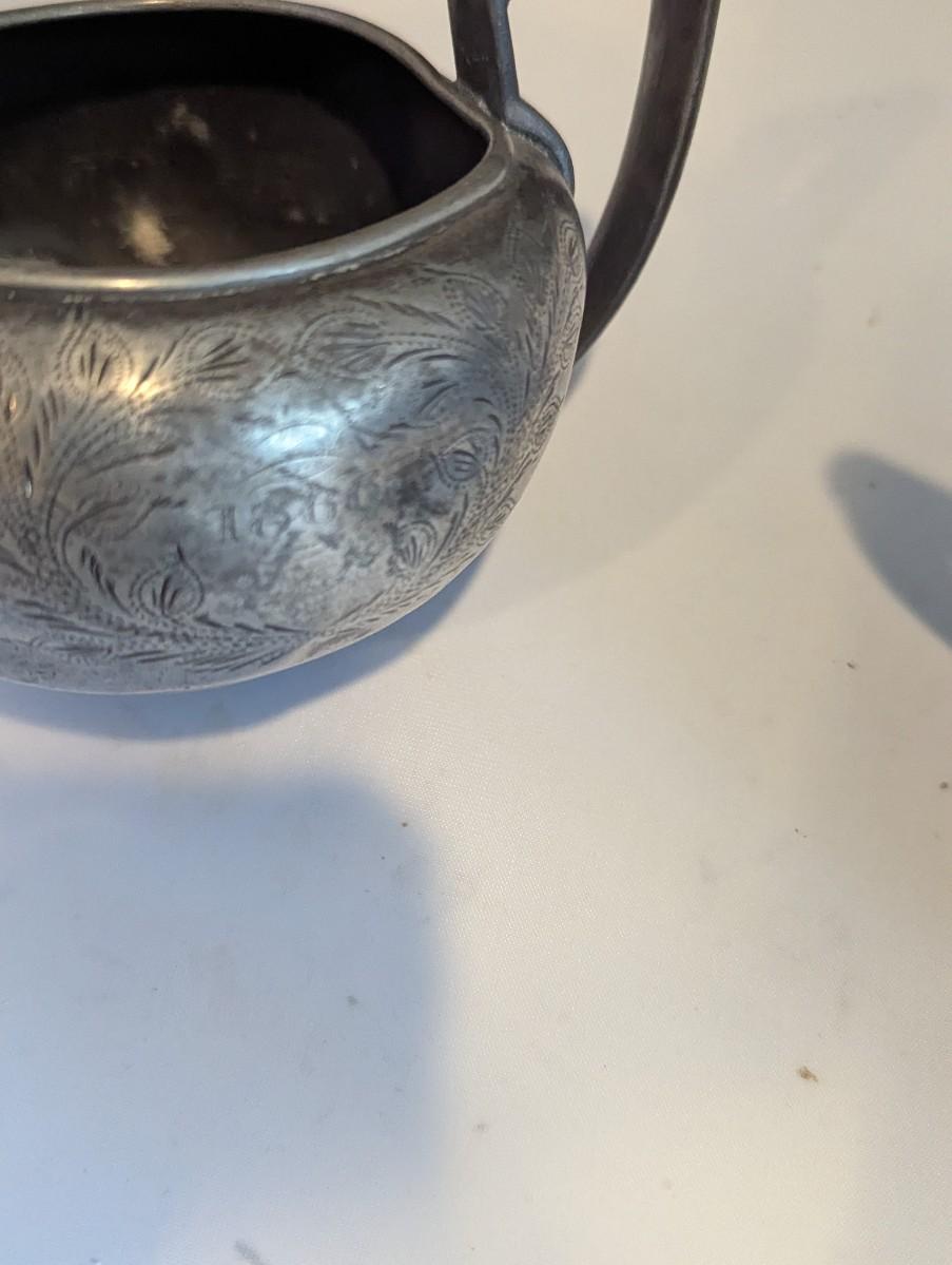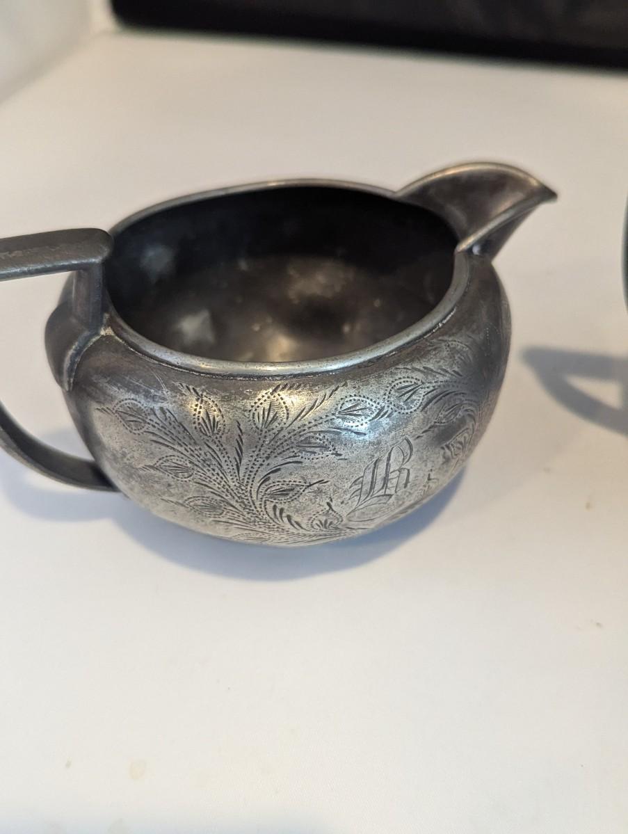 Vintage Meriden Company 1862 Sugar Bowl & Creamer Etched Designs (DR)