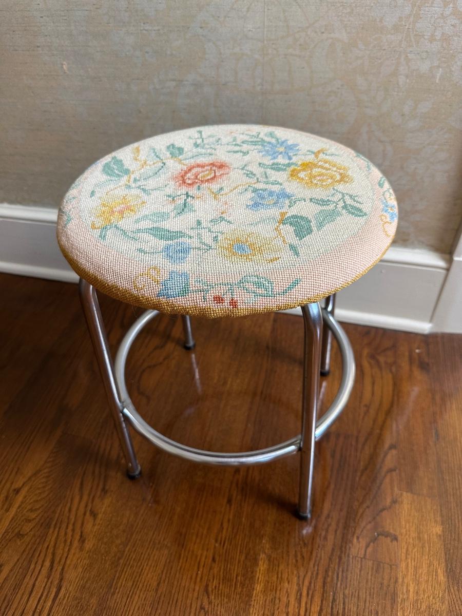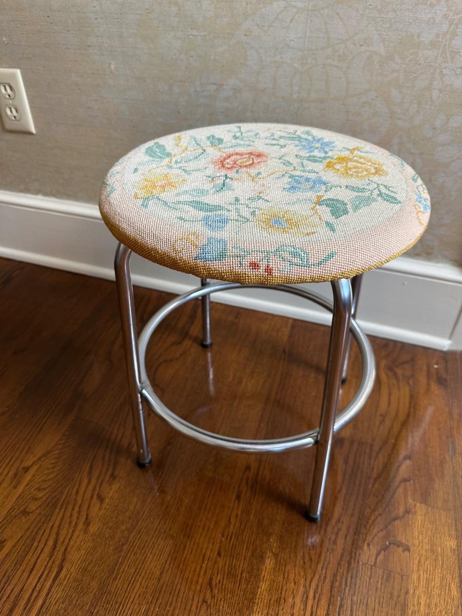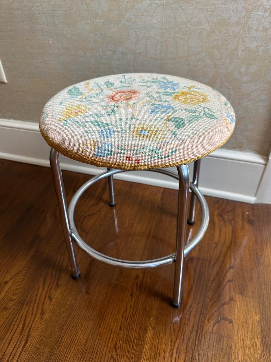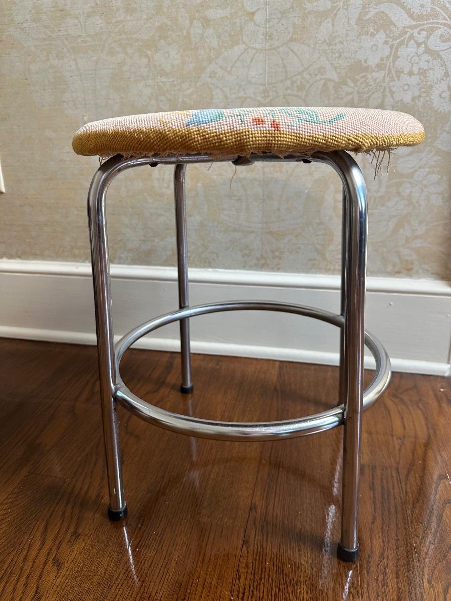 Vintage Metal And Fabric Stool