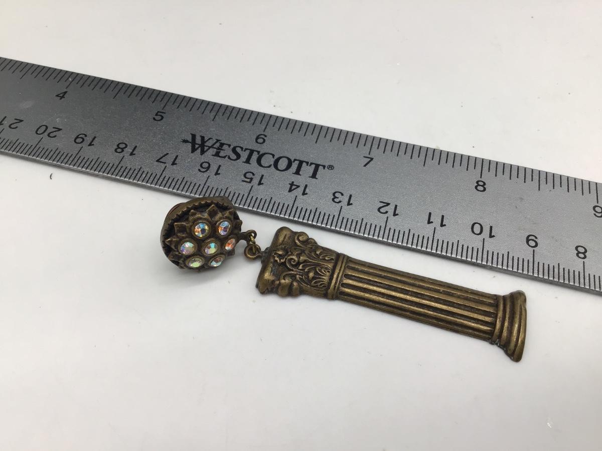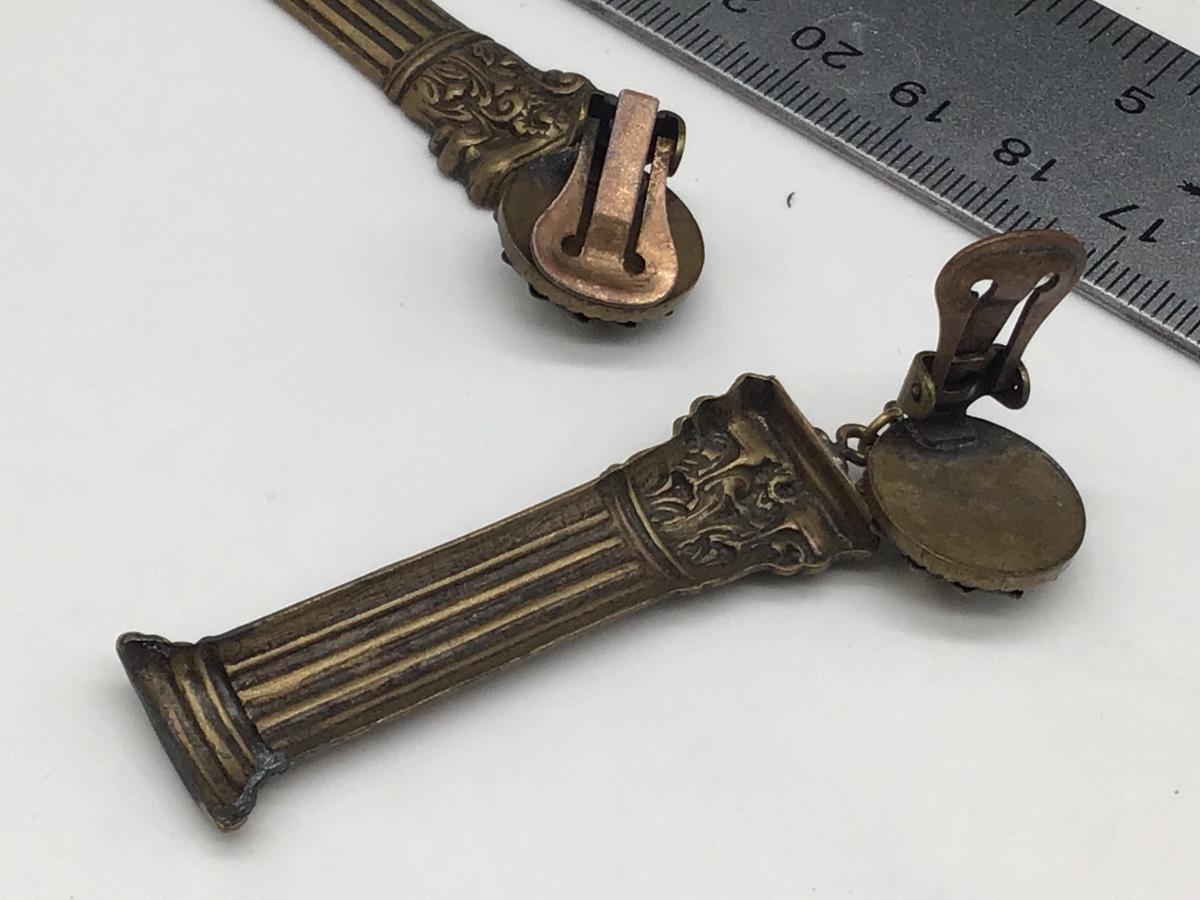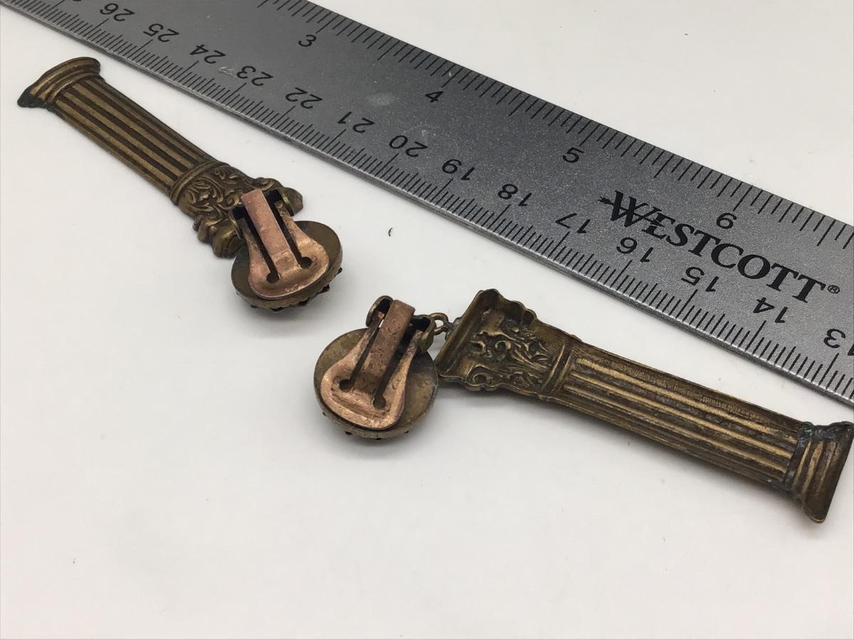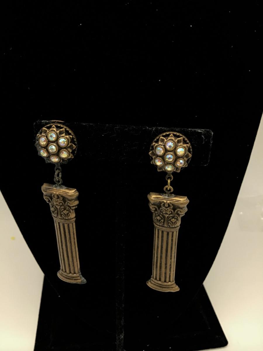 Vintage Metal and Rhinestone Roman Column Earrings