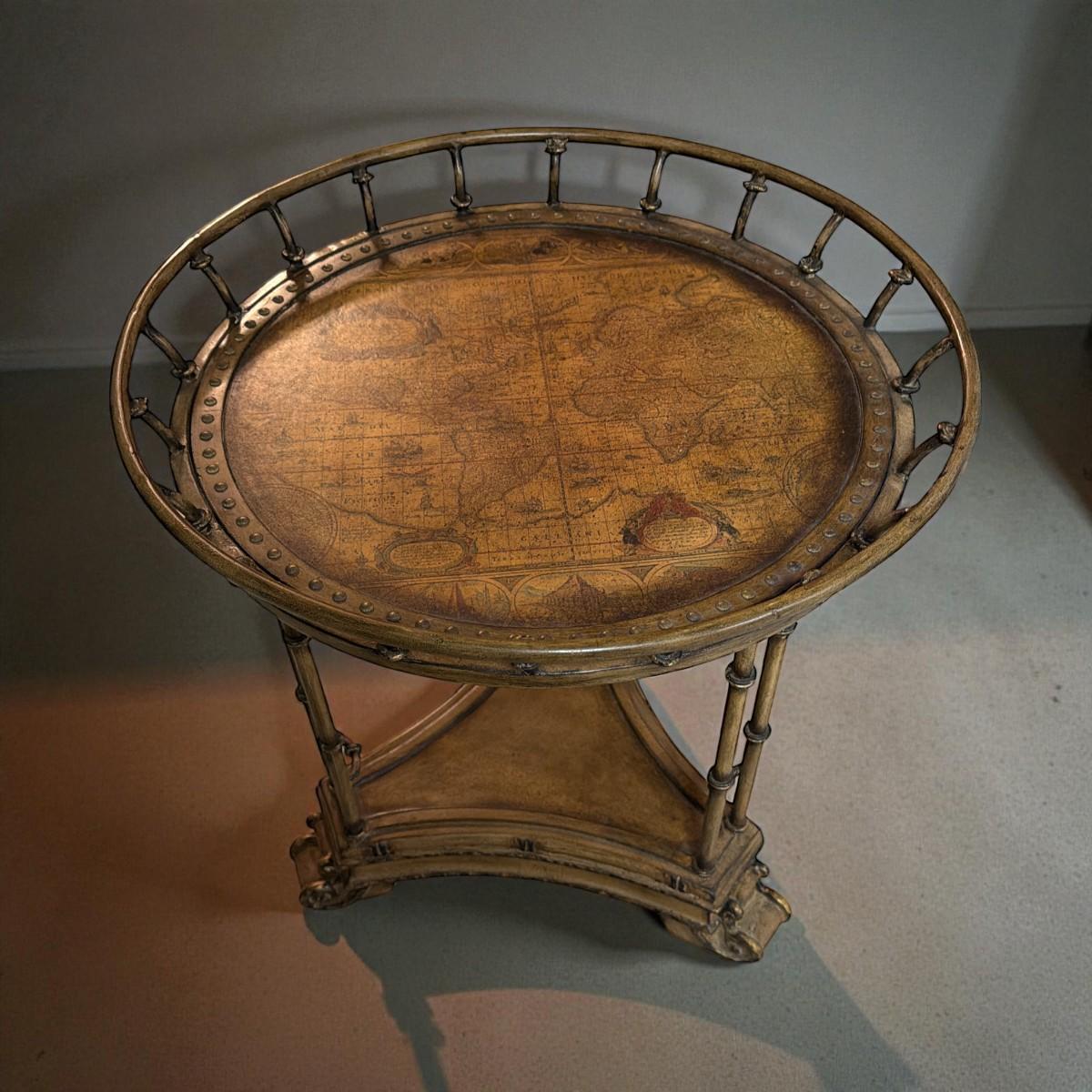 Vintage Metal and Wooden Tray Table with Faux Bamboo Base and World Map on Removable Tray Top.