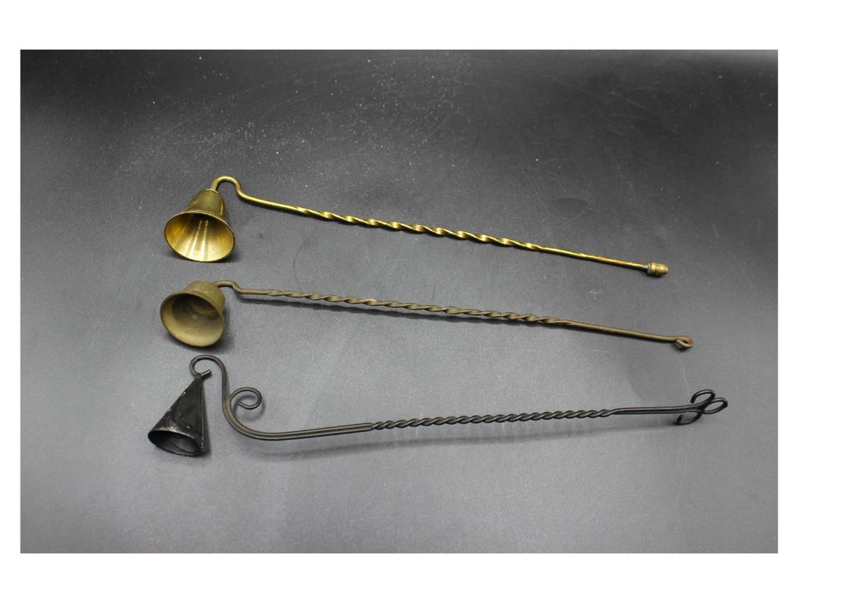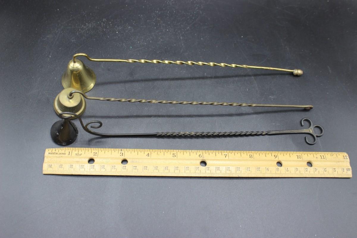 Vintage Metal Brass Twisted Handle Candle Snuffers, there is no significant dents or damage to the candle snuffers and is in good vintage condition. Check pictures for more details and for sizing.