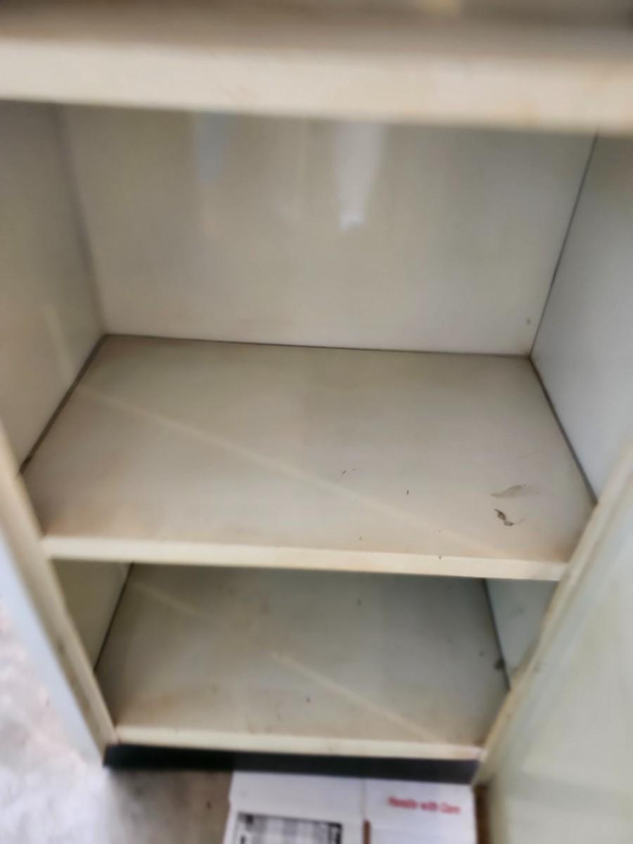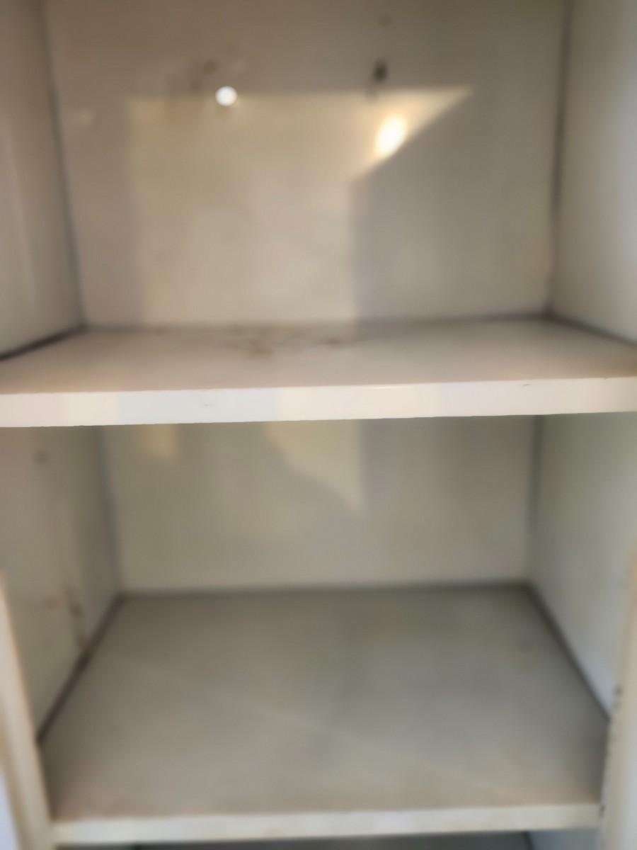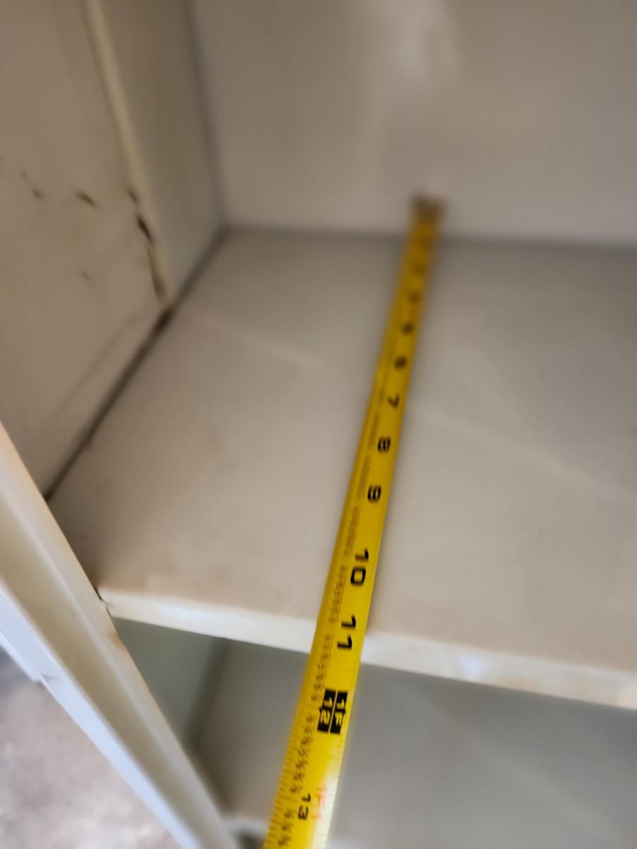 Vintage Metal Cabinet, one door, rounded top, 5 shelves. 18w x 15 deep x65 tall