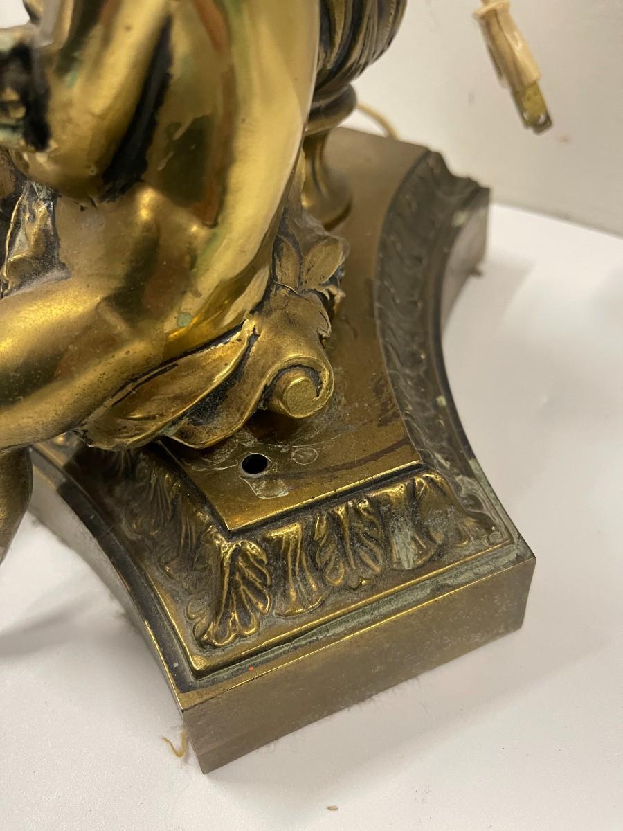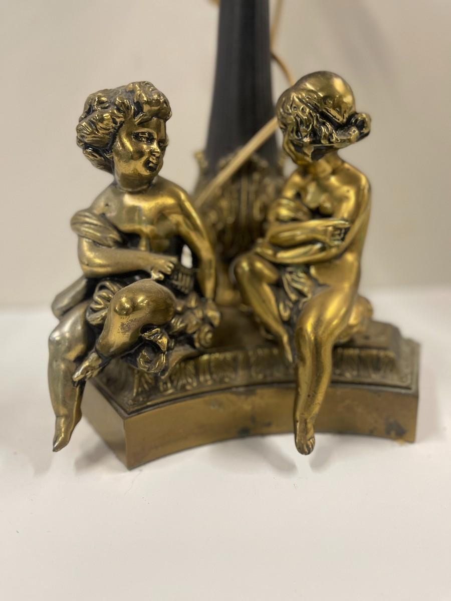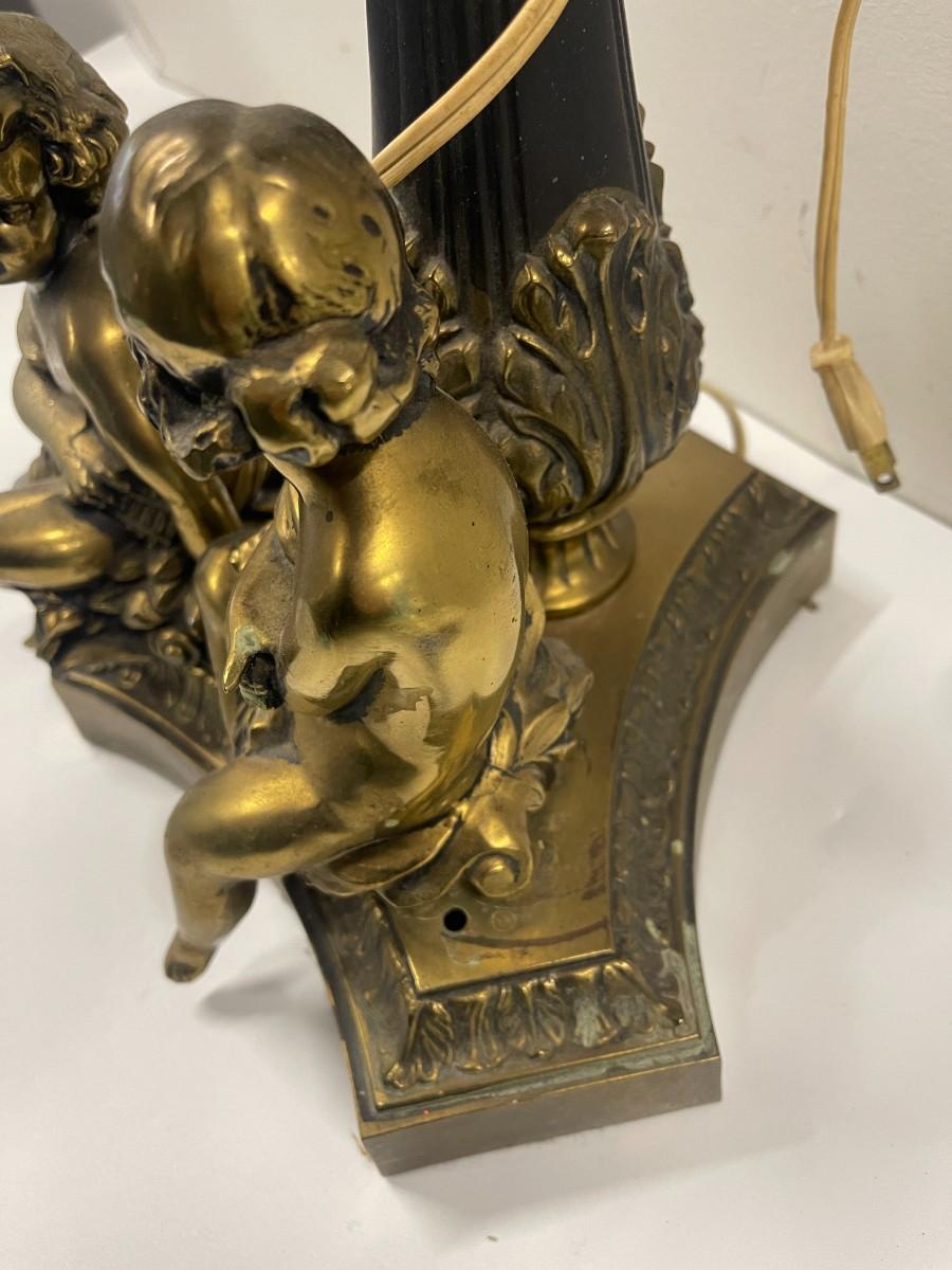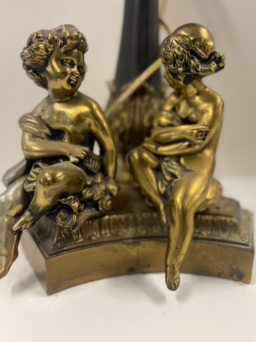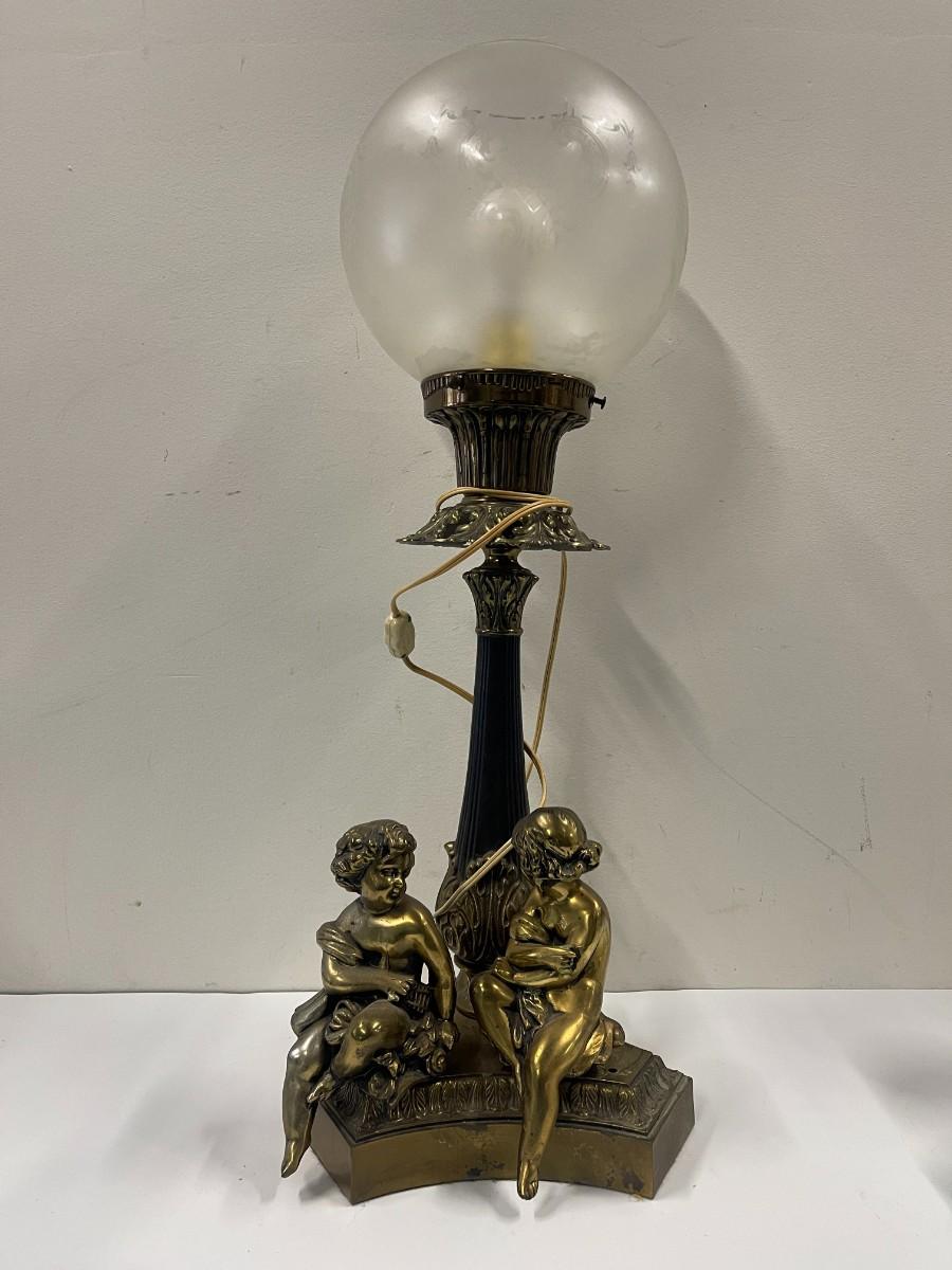 Vintage Metal Cherub Lamp with Globe Shade