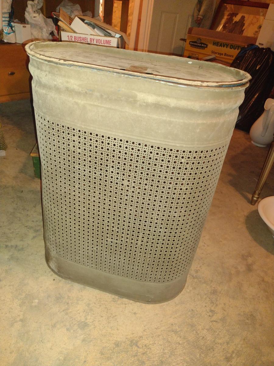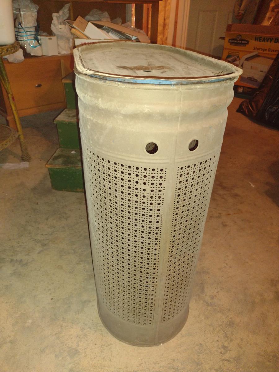 Vintage Metal Clothes Hamper with Lid- Approx 12" x 21" x 27 1/2" Tall