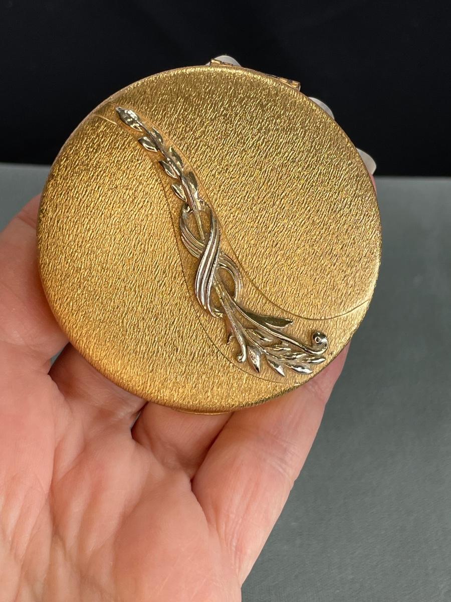 Gold tone metal. Has puff and powder still inside. CouldSilk New York - DuBarry Div - Paris