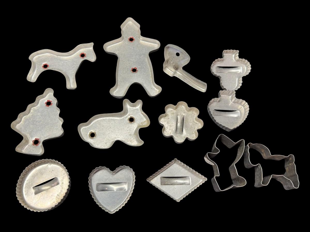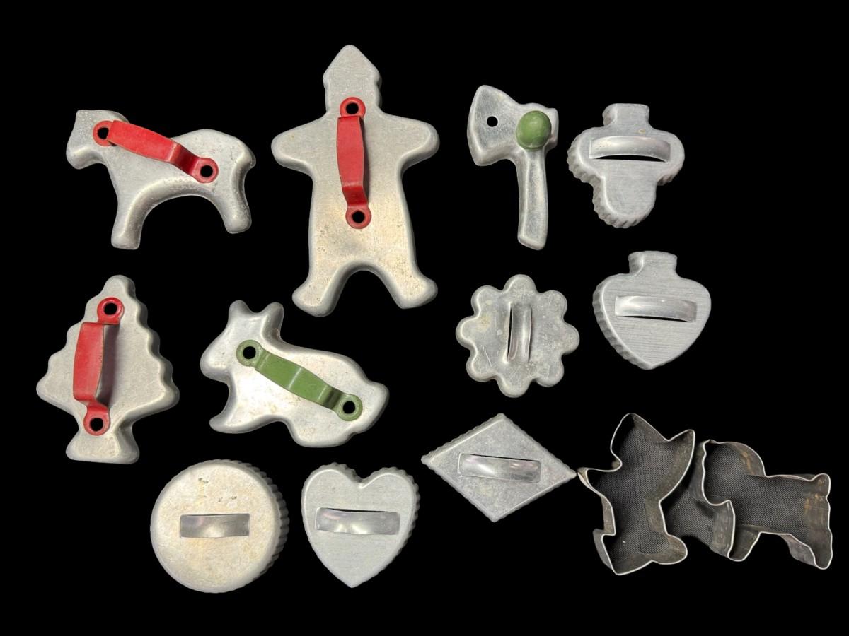 Includes animals, figures, and more. Total of 13 pieces. Some have raised handles. Age related wear. Measurement of longest: 6”L. [SR]