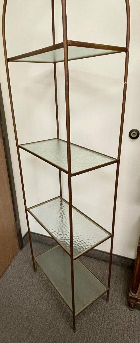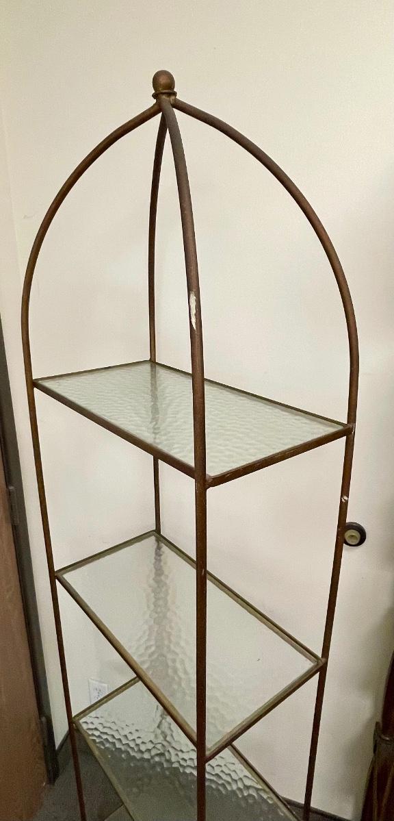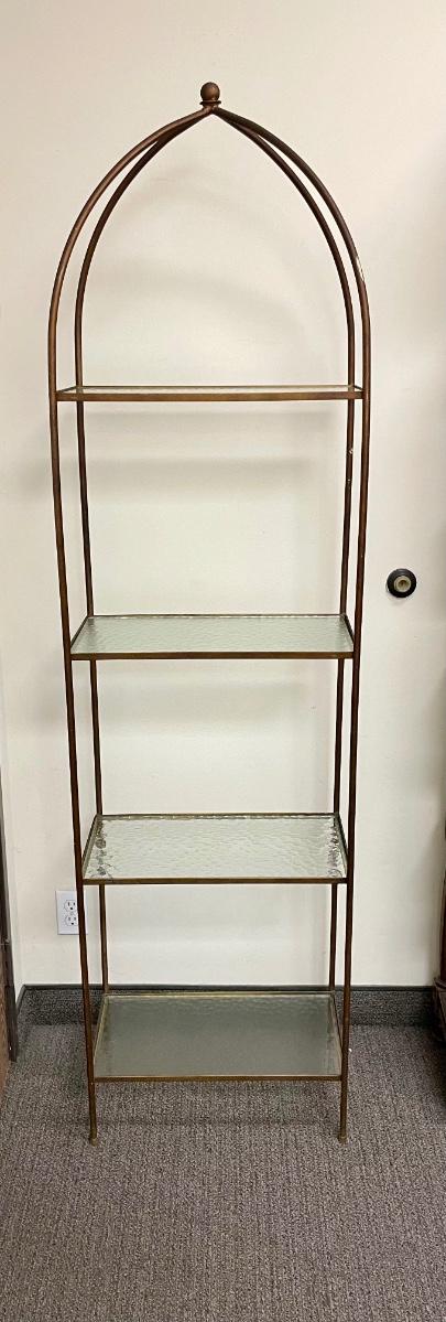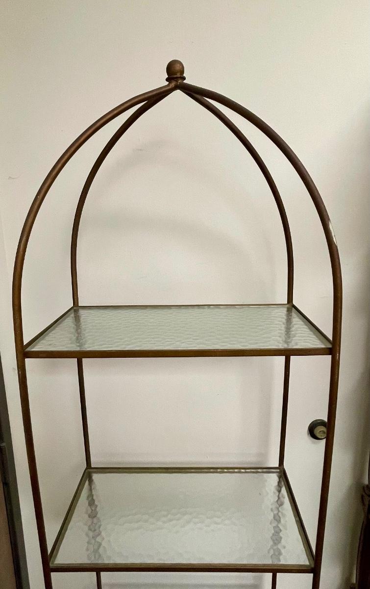Vintage Gold Wrought Iron Display Rack With Glass Shelves Hollywood regency Mid century