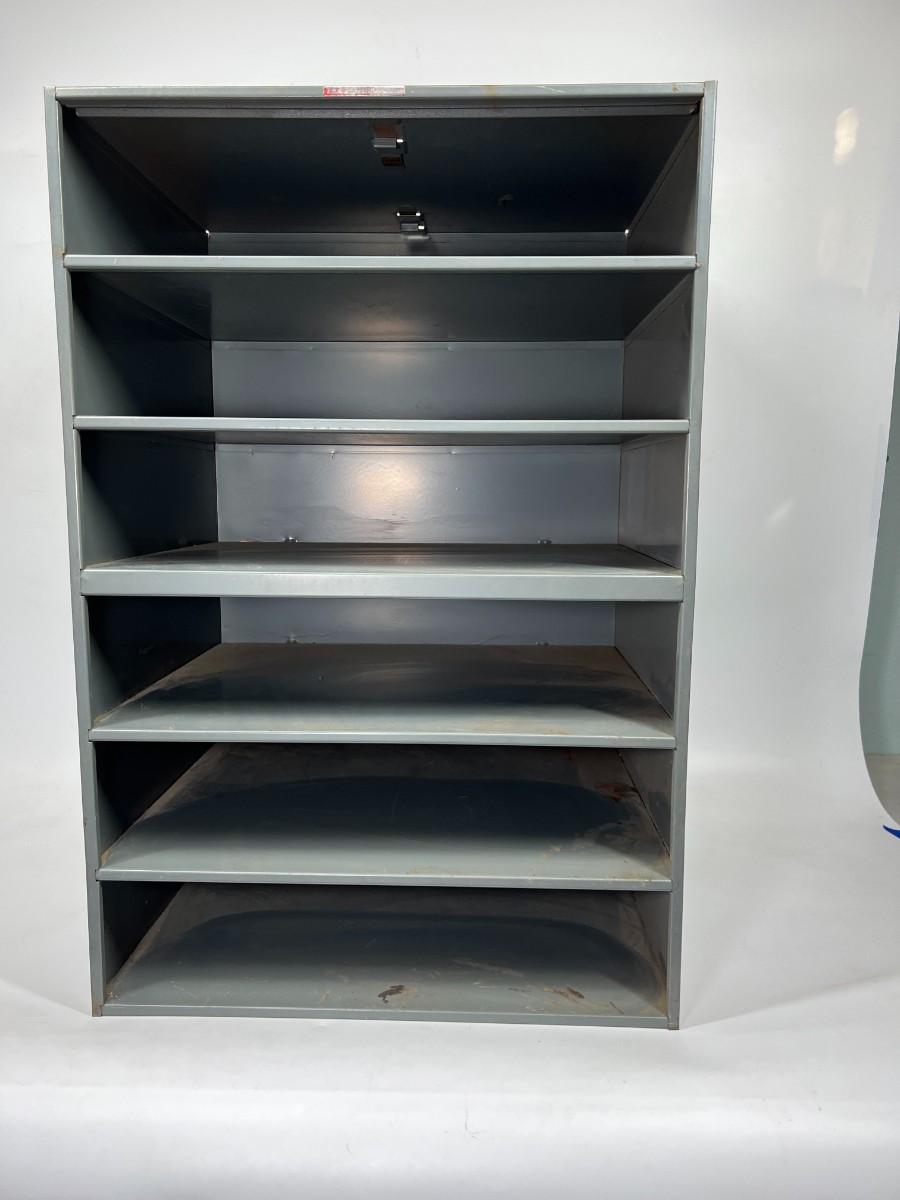 Vintage Metal Divided Paper Sorter Shelf Tab Products Co. In good vintage condition. 6 slot divided shelf. About 25" tall.
