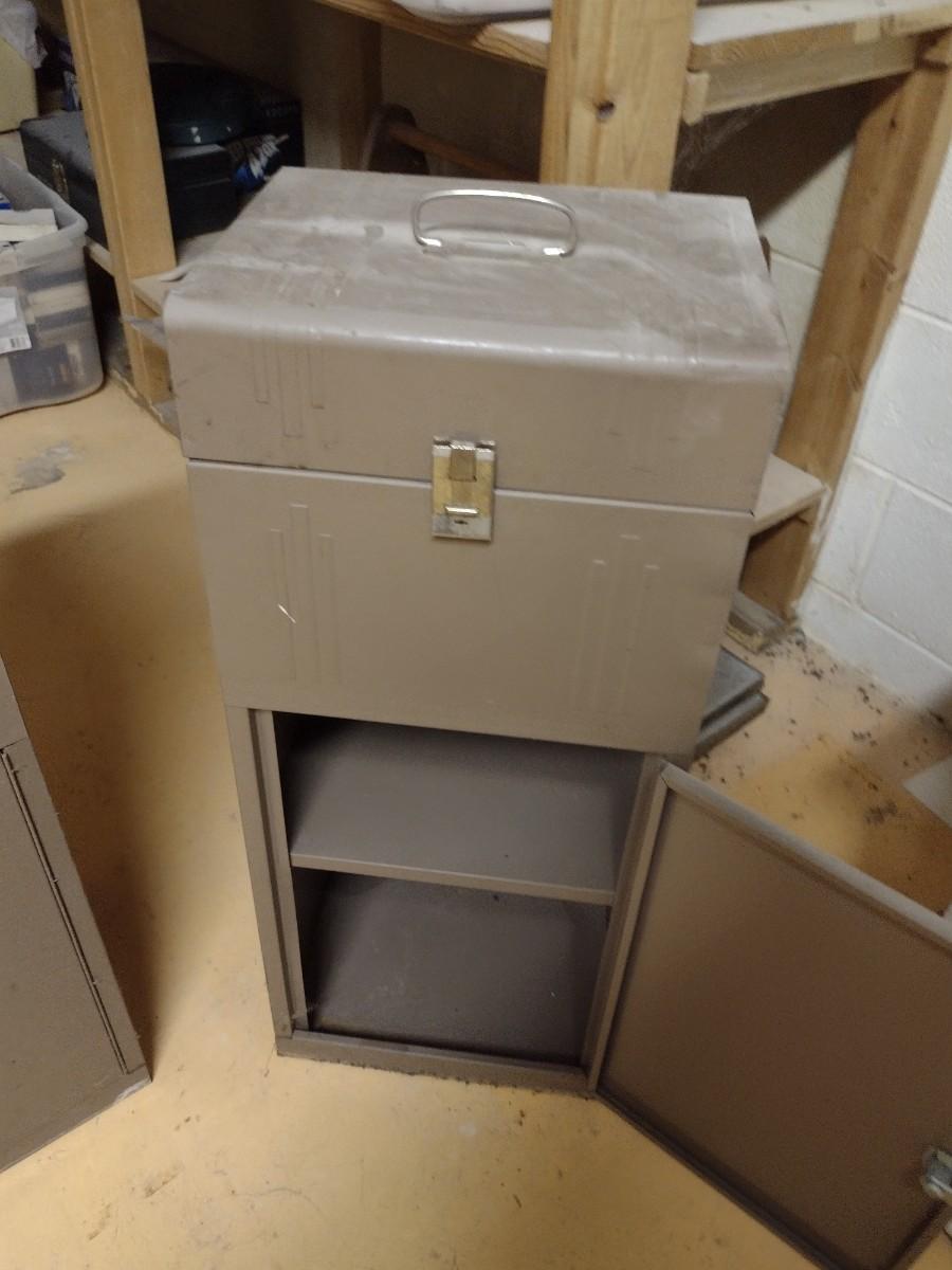 Vintage Metal Document/Storage Box by Acorn- Choice B. No key. Please see all pictures - some rust in bottom compartment.