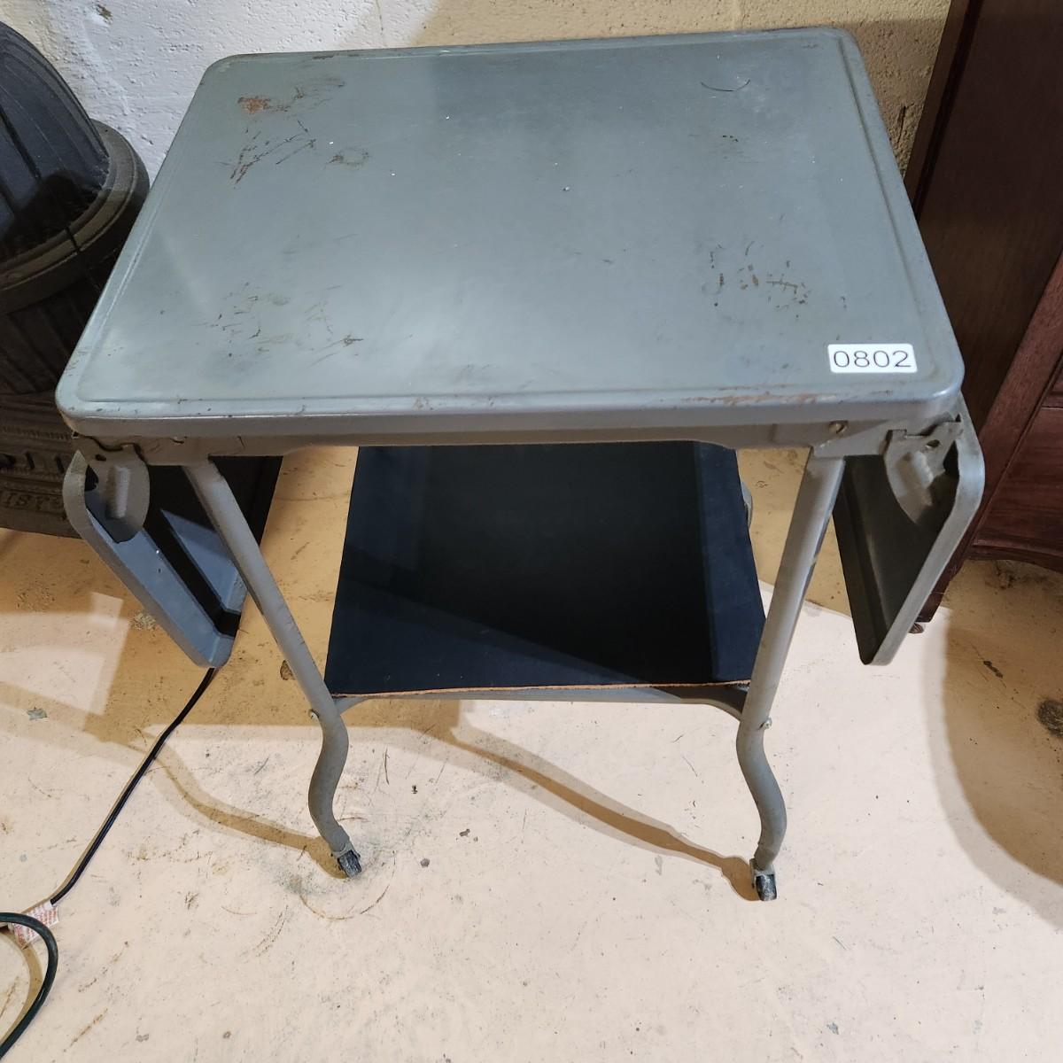 Vintage Metal Dropleaf Typewriter Table on Wheels
