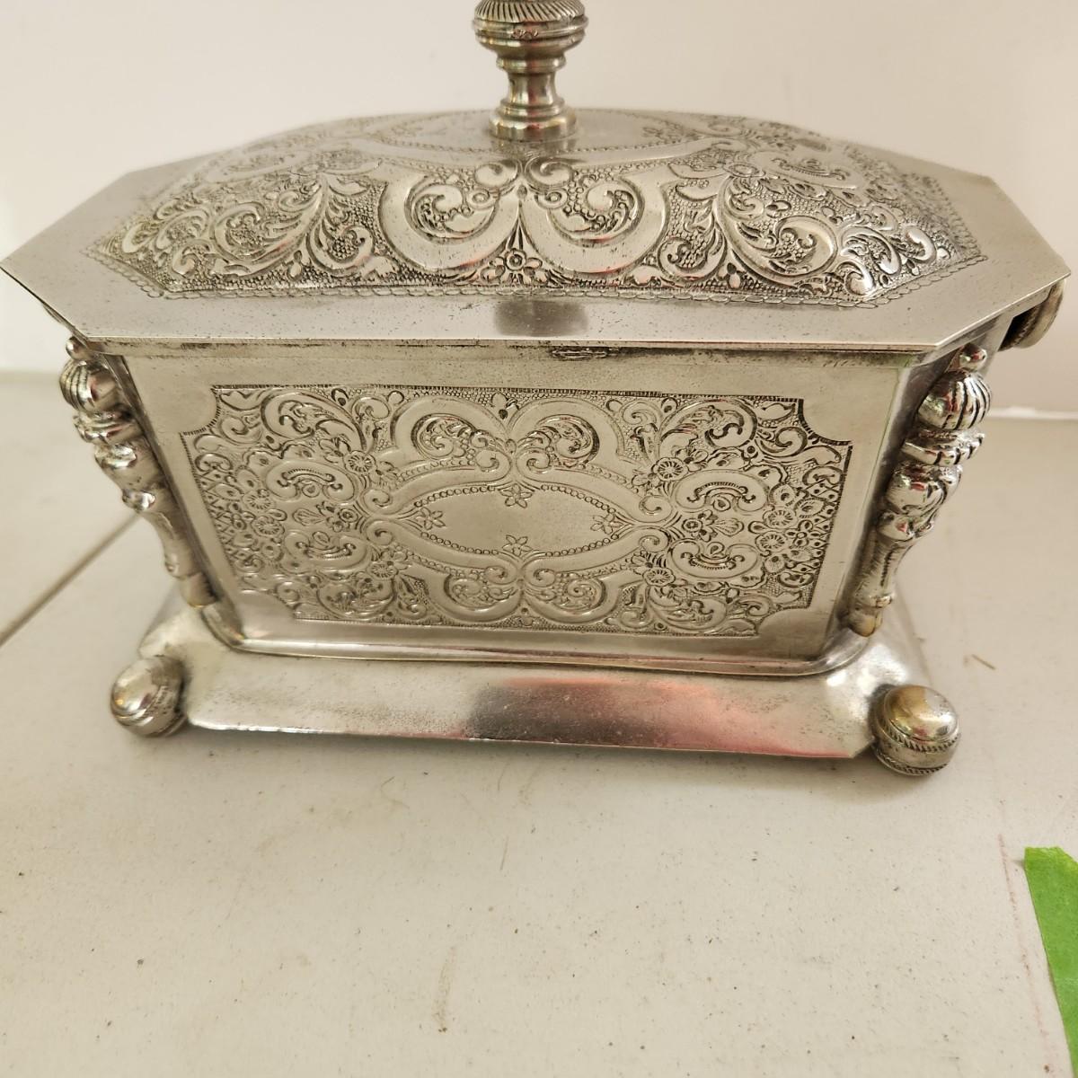 Vintage Metal Engraved Jewelry Tea Box Middle East